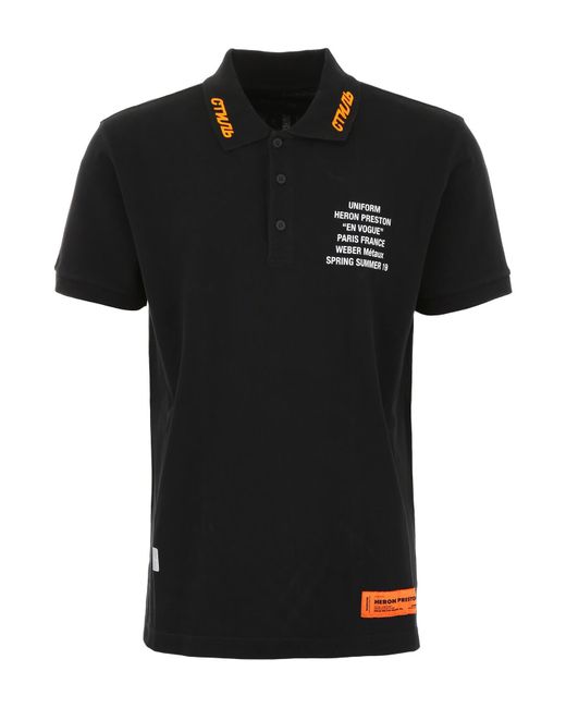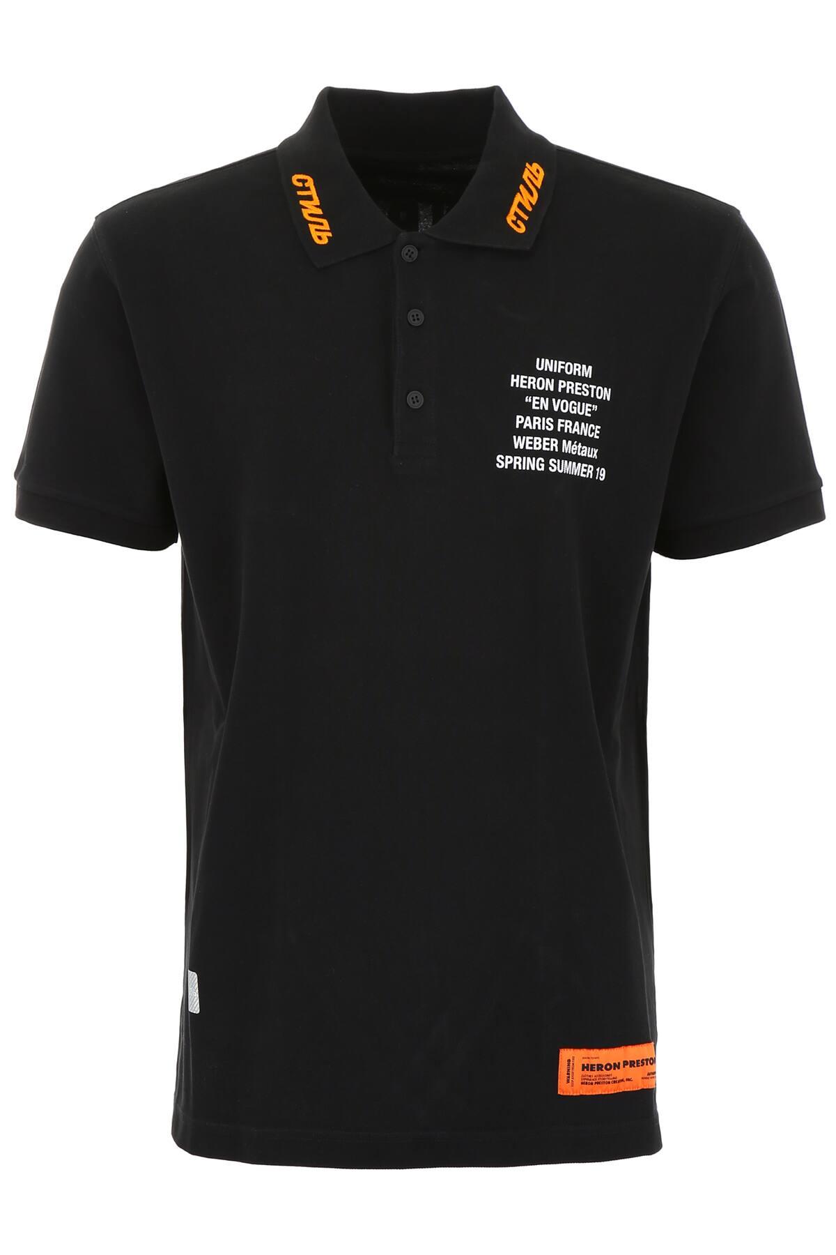 Polo HERON PRESTON in cotone piquet con testo stampato a contrasto sul petto, iconica etichetta logo applicata sul fondo e ricamo "Style" a contrasto sul colletto. Fondo più lungo dietro, spacchetti laterali e finiture a costine. Il modello è alto 182 cm e indossa la taglia M. Colore: nero