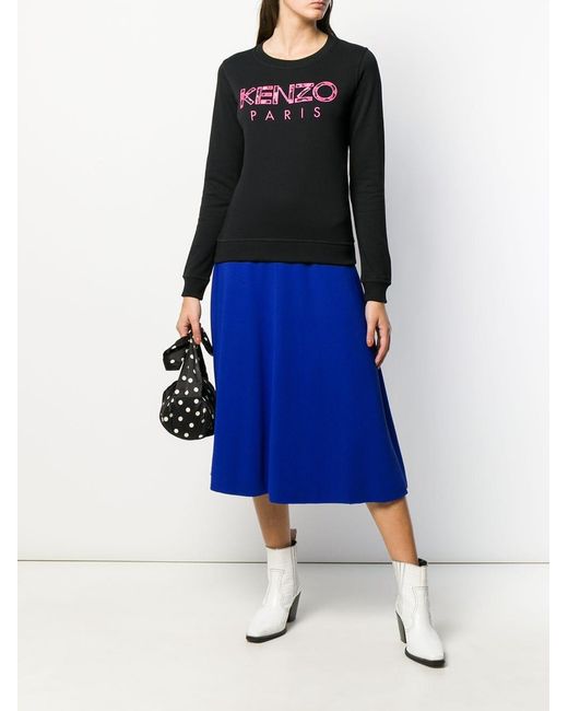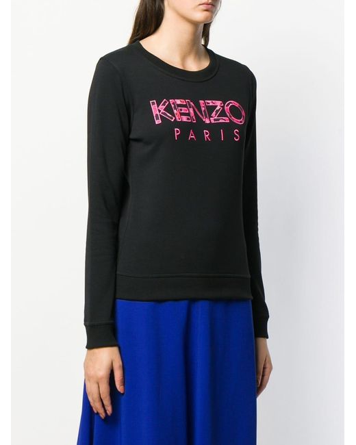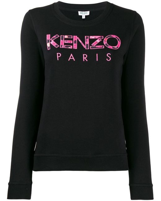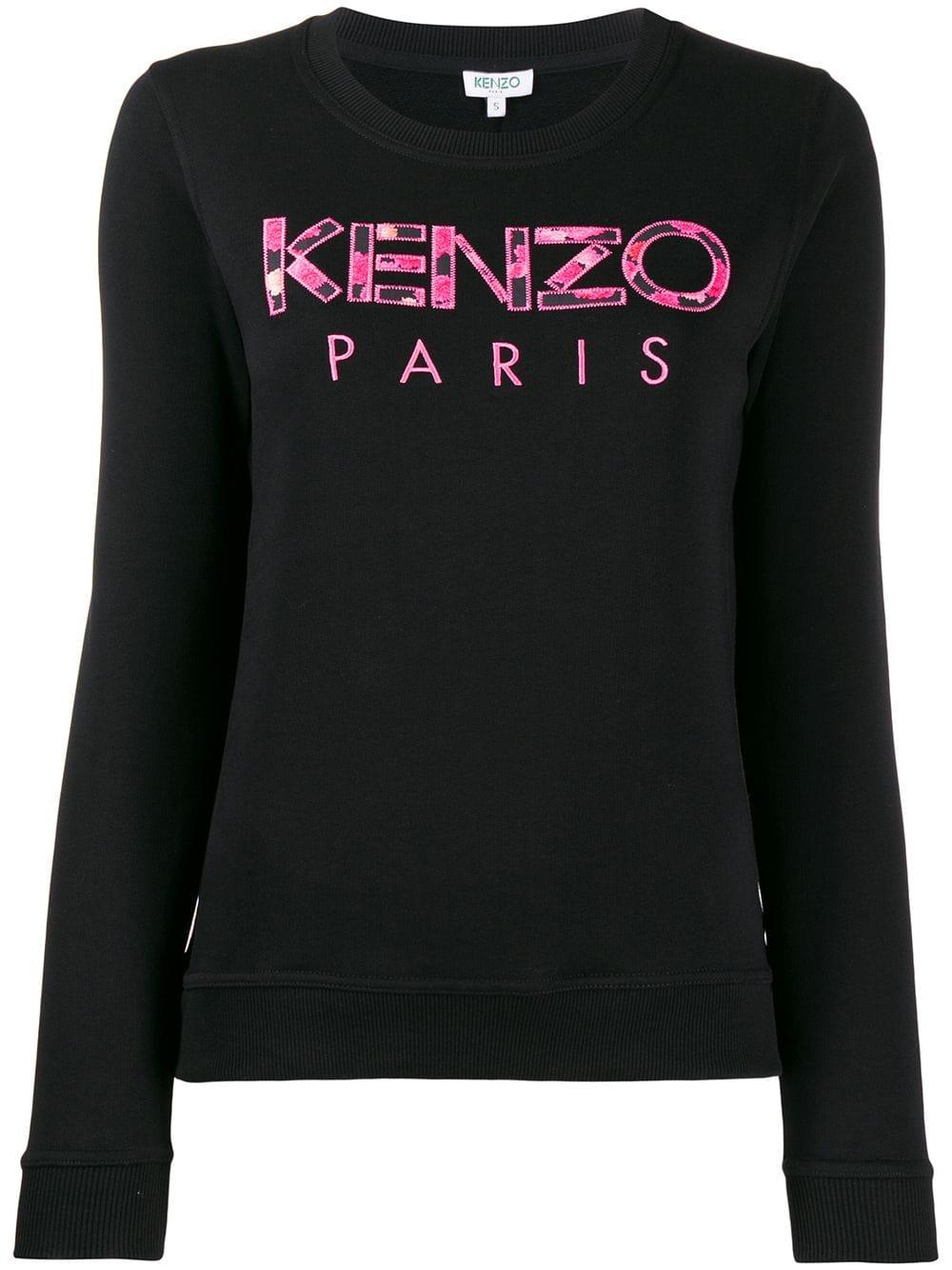 Felpa con applicazione di colore nero in cotone di Kenzo. Modello con girocollo, maniche lunghe, logo ricamato sul davanti e applicazioni a forma di fiore. Colore: nero