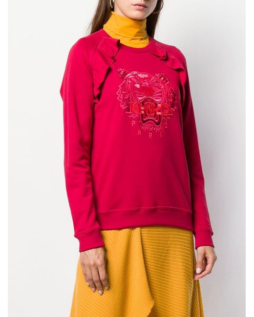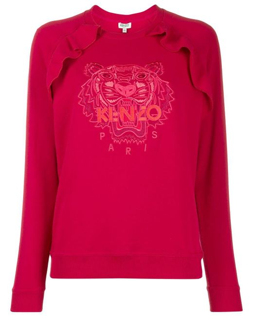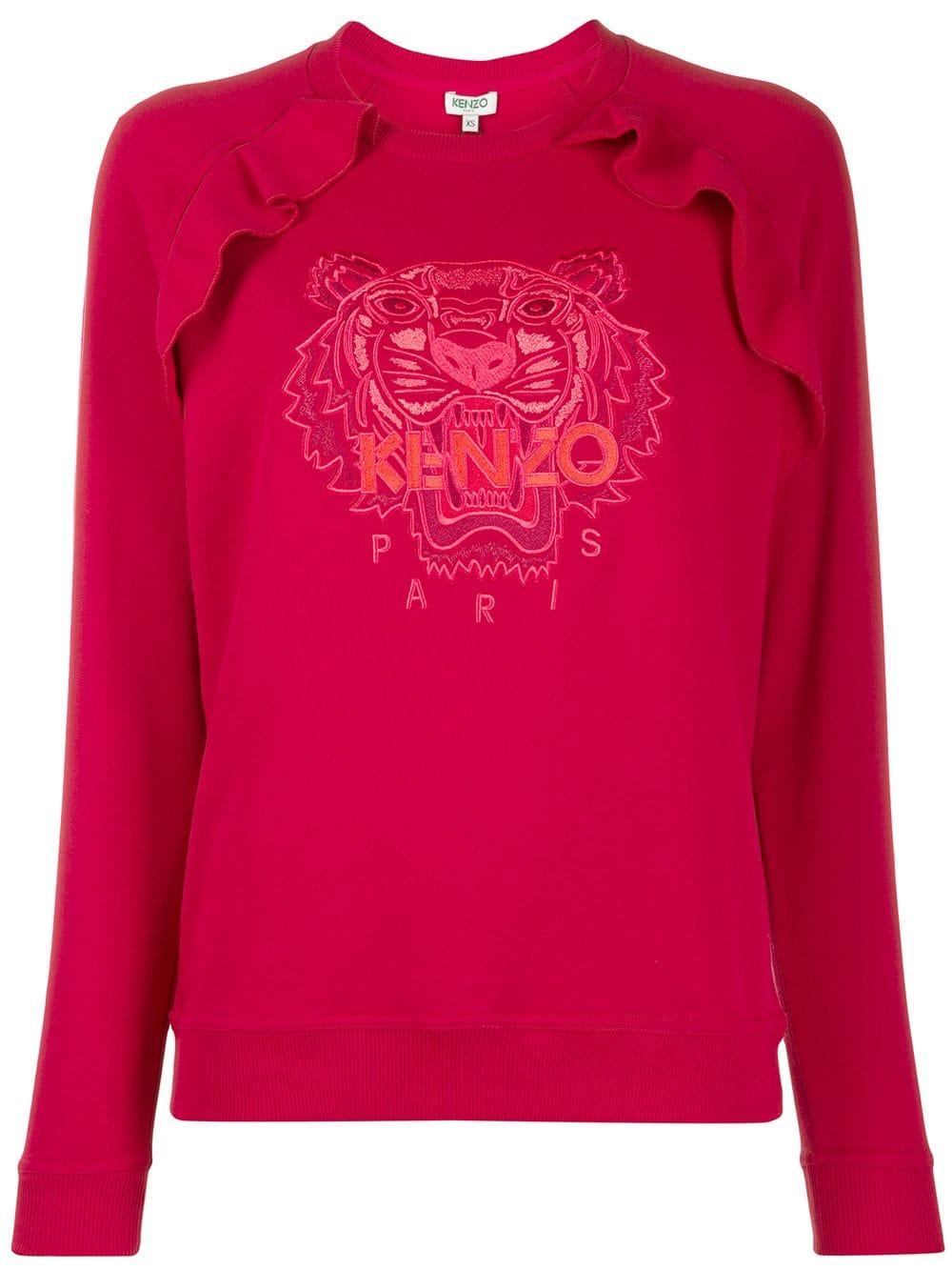 Felpa con ricamo di colore rosso in cotone di Kenzo. Modello con girocollo, maniche lunghe, vestibilità morbida e orlo e polsini a coste. Colore: rosa