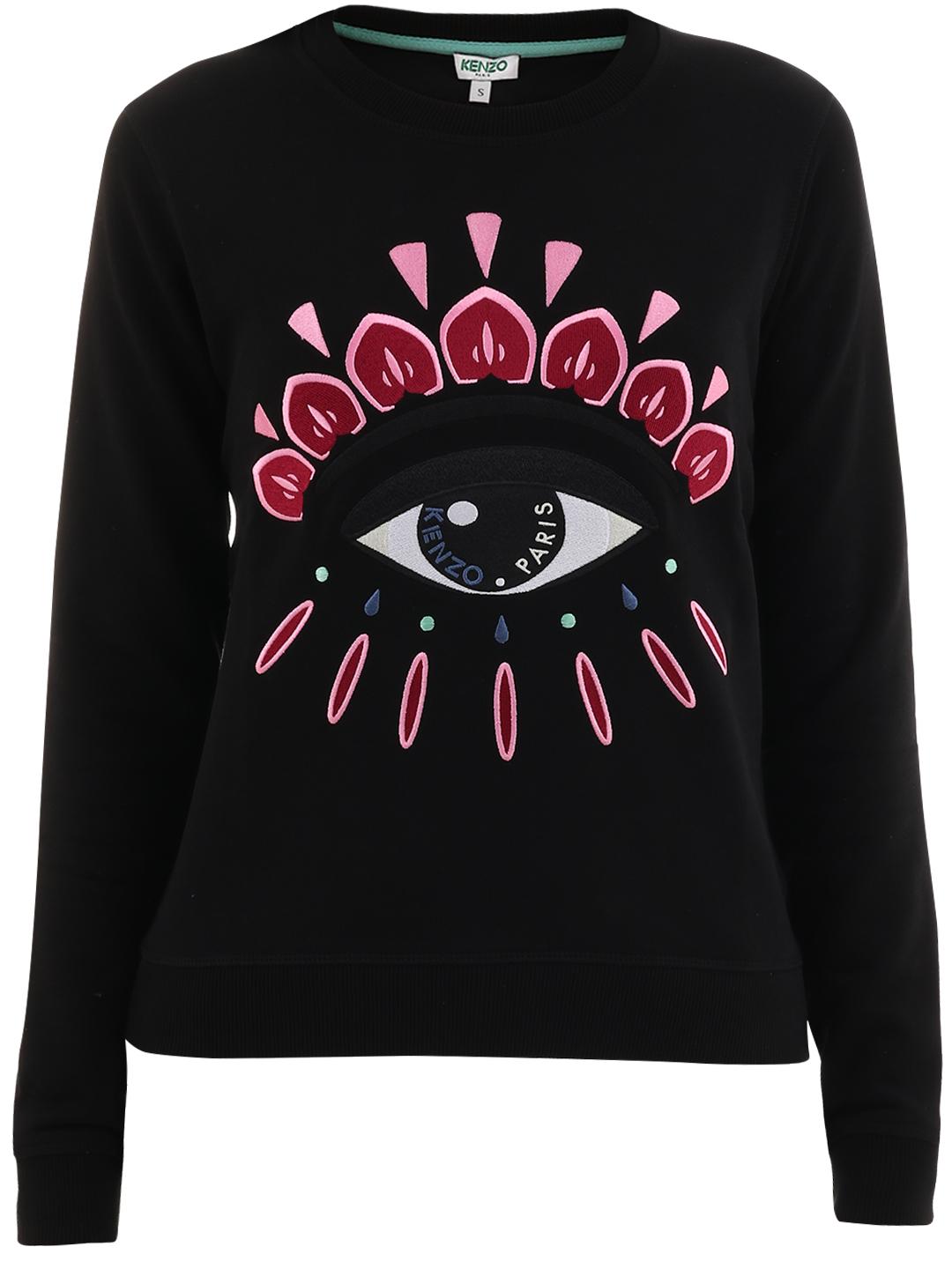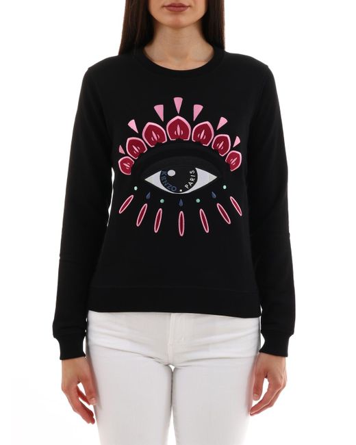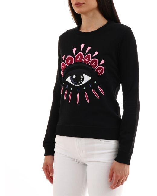 Felpa KENZO in jersey di cotone, arricchita da maxi "occhio" e logo ricamati sul davanti. Presenta una vestibilità regolare e finiture a costine sul collo, ai polsi e sul fondo. La modella è alta 177 e indossa la taglia XS.