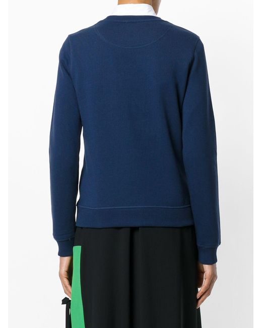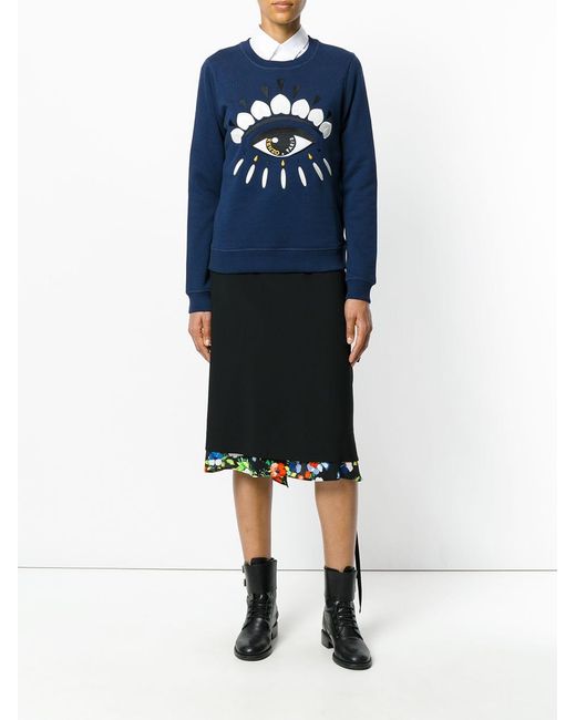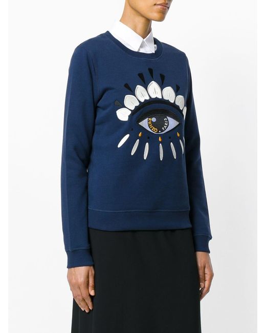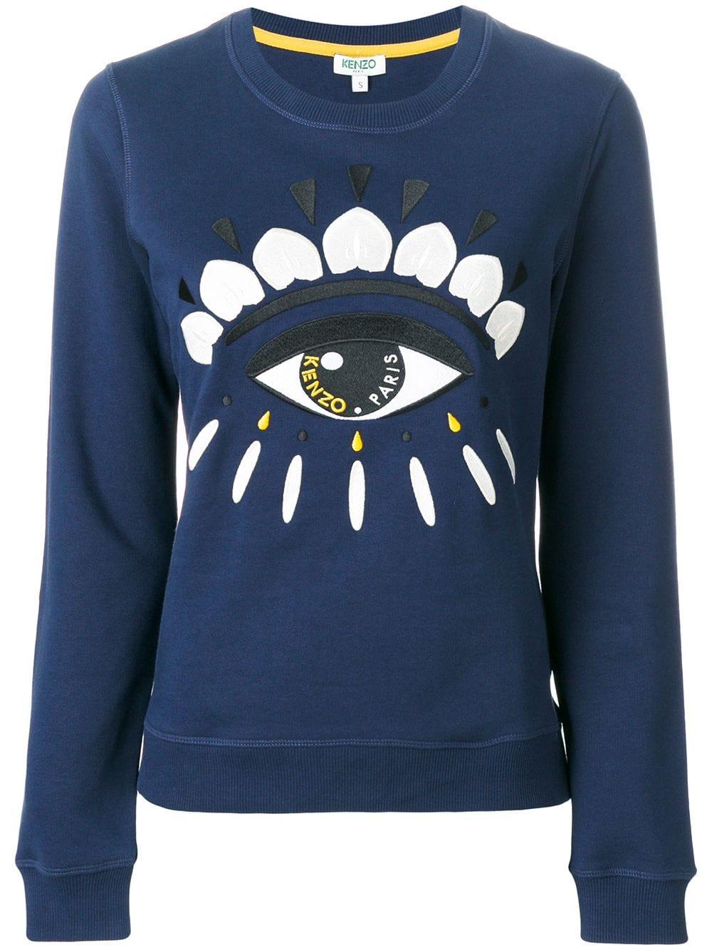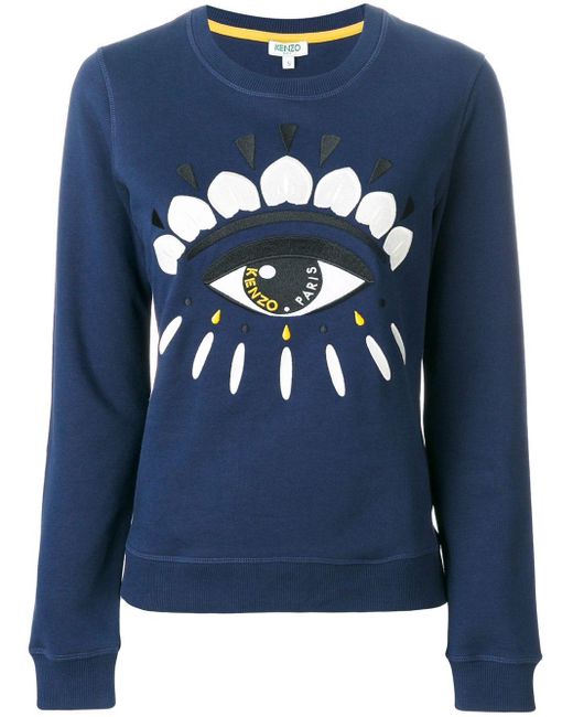 Maglione 'Eye' in cotone blu di Kenzo con girocollo, manica lunga, polsini e vita elasticizzati e orlo dritto. Colore: blu