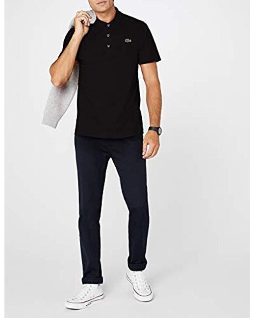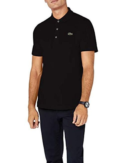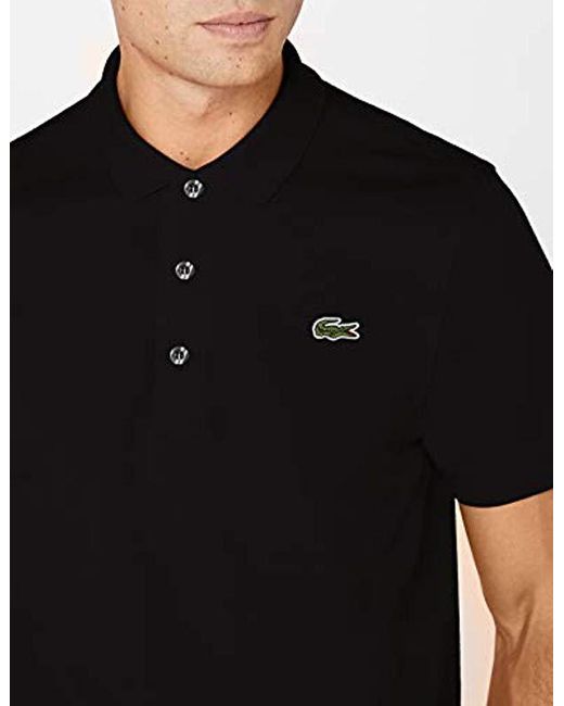 Lacoste SPORT - POLO A MANICHE CORTE DA UOMO - L1230. Collo a 3 bottoni. Regular fit. Maglia di cotone ultra leggero. Marchio con coccodrillo verde ricamato sul petto. Colore: nero
