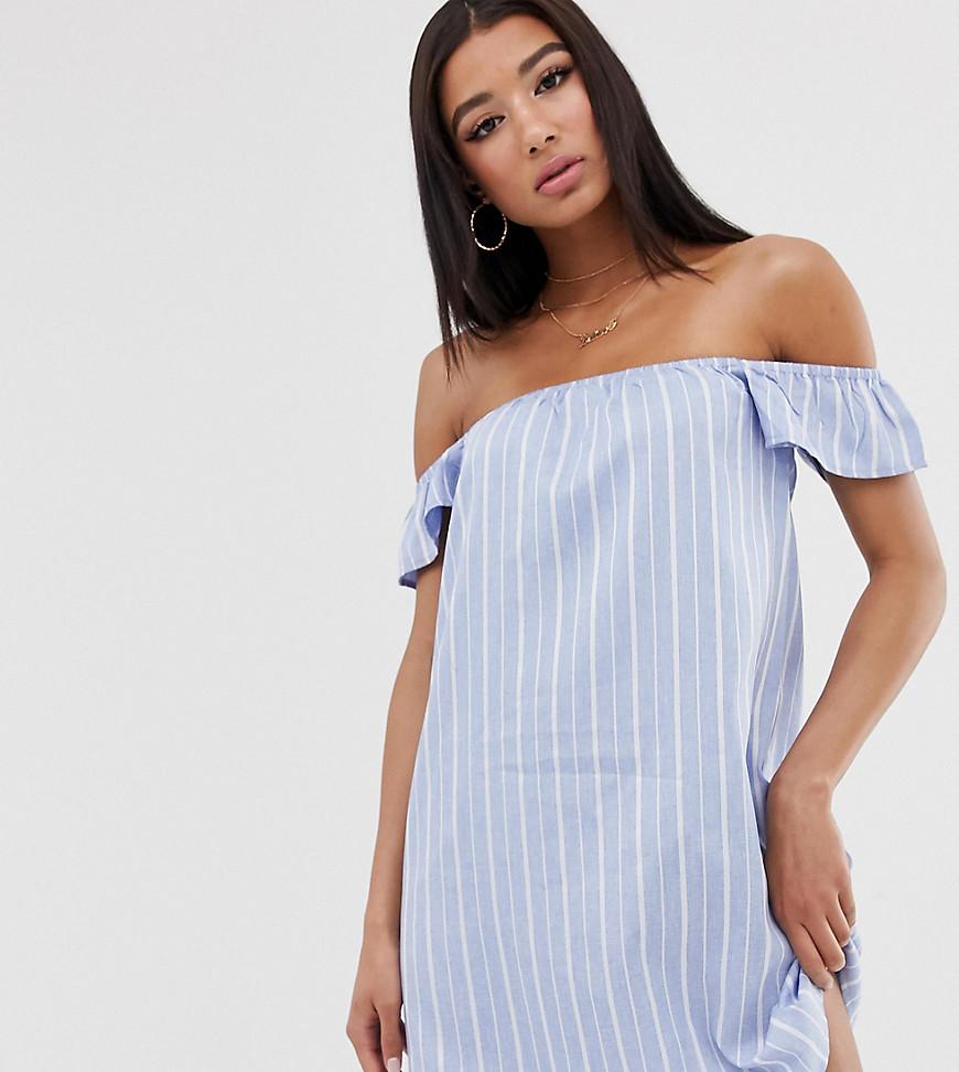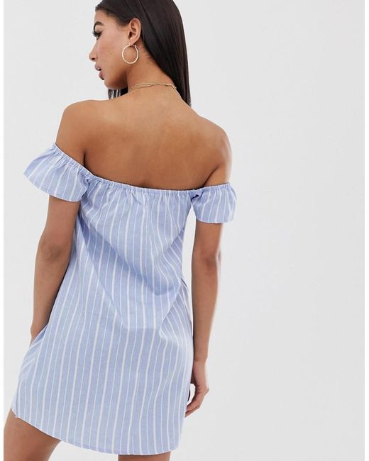 Vestito di Missguided, Per quella vacanza che non hai ancora prenotato, Scollo alla Bardot elasticizzato, Stampa a righe, Vestibilità comoda, Cade morbidamente sul corpo. Con un occhio alle passerelle e alle belle ragazze, le creazioni del team interno di Missguided sono pensate per le sognatrici, le sostenitrici e le amanti della vita notturna. Rischiando come nessun'altro osa fare, i suoi vestiti aderenti, i top corti e i denim strappati compongono una collezione di modelli originali meravigliosi. Denim/ poliestere/ stampa. Colore: blu