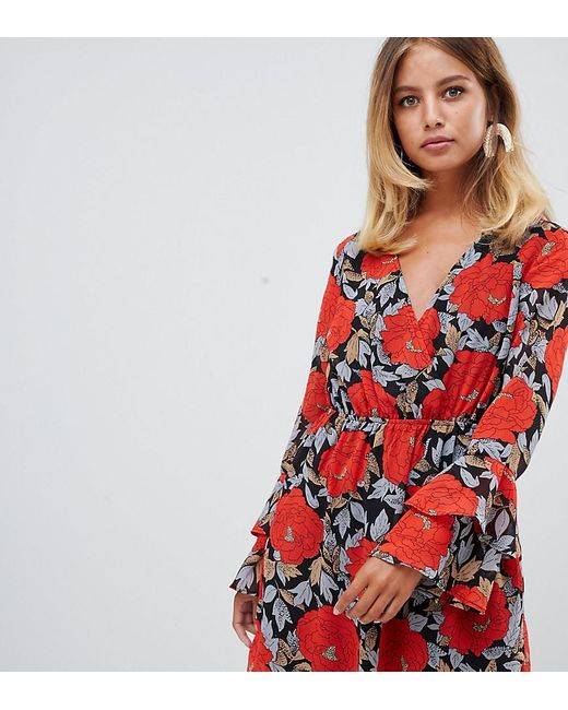 Vestito di Missguided, Credi nell'amore a prima vista? Scollo a V, Vita arricciata, Fantasia a fiori, Bella come i fiori veri, ma senza l'allergia al polline, Bordo con volant, Vestibilità classica - veste la taglia indicata. Con un occhio alle passerelle e alle belle ragazze, le creazioni del team interno di Missguided sono pensate per le sognatrici, le sostenitrici e le amanti della vita notturna. Rischiando come nessun'altro osa fare, i suoi vestiti aderenti, i top corti e i denim strappati compongono una collezione di modelli originali meravigliosi. Denim/ poliestere/ stampa. Colore: rosso