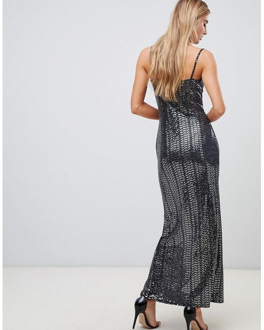 Vestito lungo di Missguided, Per i tuoi eventi più eleganti, Decorazione con paillettes, Dettagli con fili metallizzati, Per la stagione scintillante, Collo ad anello, Spacco alla coscia, Slim fit - Taglio stretto. Con un occhio alle passerelle e alle belle ragazze, le creazioni del team interno di Missguided sono pensate per le sognatrici, le sostenitrici e le amanti della vita notturna. Rischiando come nessun'altro osa fare, i suoi vestiti aderenti, i top corti e i denim strappati compongono una collezione di modelli originali meravigliosi. Denim/ elastan. Colore: nero