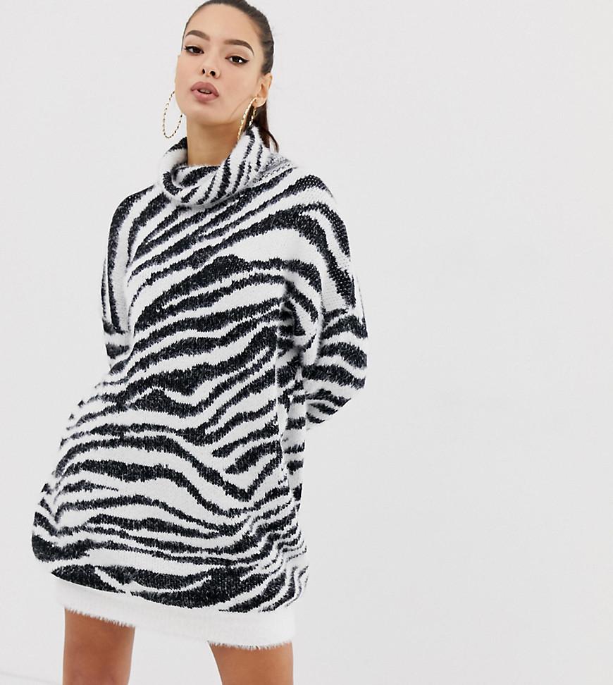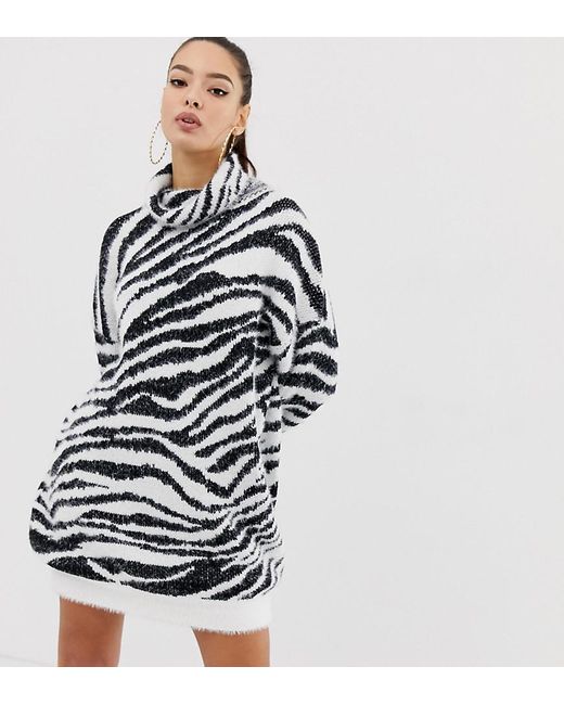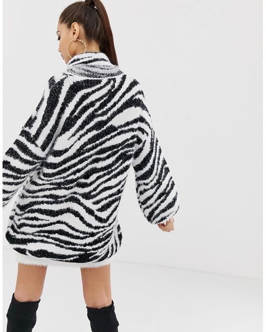 Vestito maglia dolcevita zebrato da donna di colore bianco