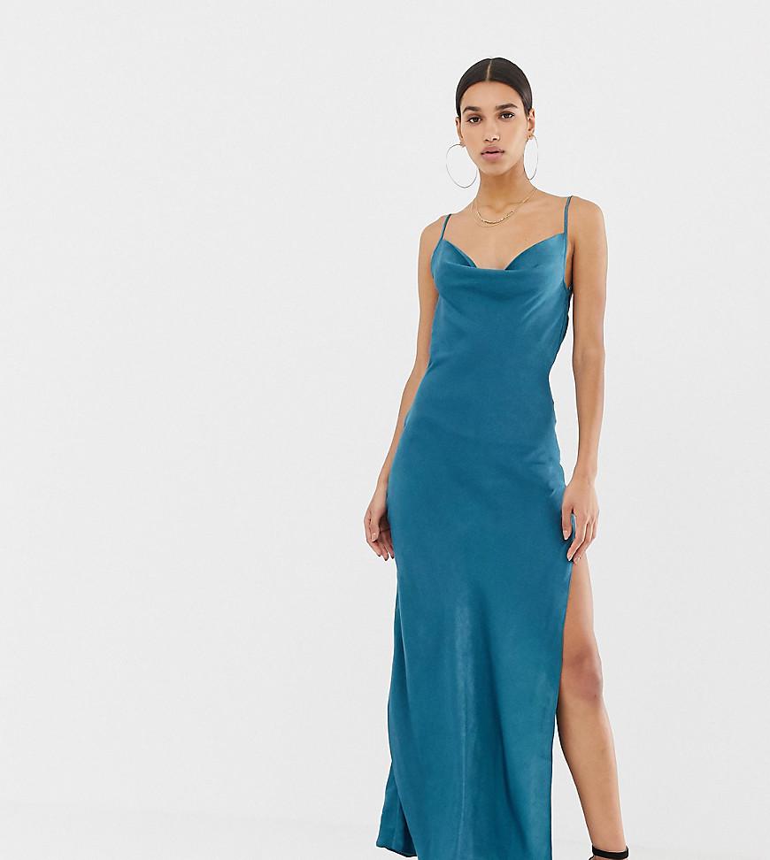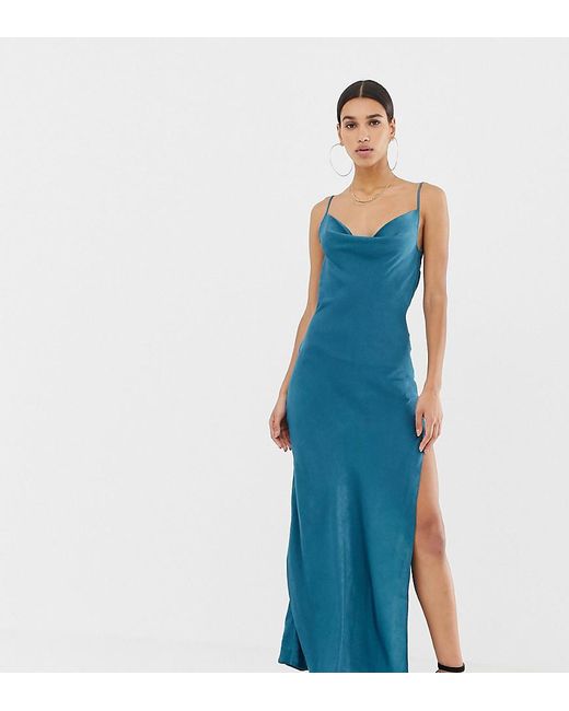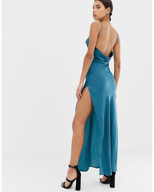 Vestito di Missguided, Ti senti elegante? Collo ad anello, Spalline regolabili, Schiena scollata, Spacco alla coscia, Vestibilità classica, Non troppo largo, non troppo stretto. Con un occhio alle passerelle e alle belle ragazze, le creazioni del team interno di Missguided sono pensate per le sognatrici, le sostenitrici e le amanti della vita notturna. Rischiando come nessun'altro osa fare, i suoi vestiti aderenti, i top corti e i denim strappati compongono una collezione di modelli originali meravigliosi. Denim/ poliestere/ raso/ seta. Colore: blu