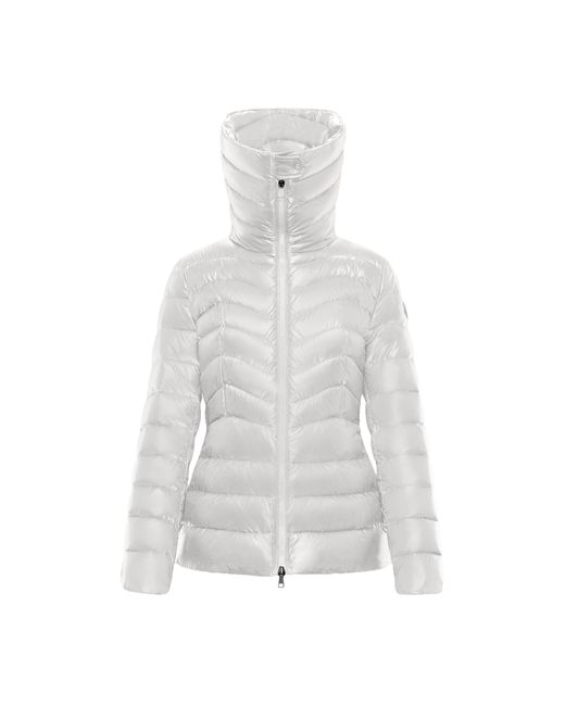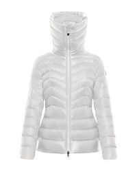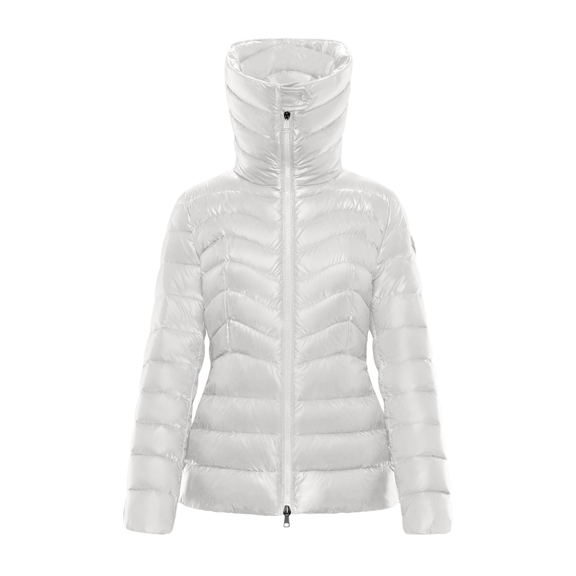 Auline gioca con la femminilità in maniera sottile e sussurrata grazie all'imbottitura a boudin che disegna leggere onde sull'intero corpo del giubbotto. La silhouette è enfatizzata dalle linee accostate al corpo, mentre il nylon laqué completa questo pregevole esercizio di stile. Tessuto tecnico. Trapuntato. Logo. Collo alto. Maniche lunghe. Zip e automatici. Due tasche. Interno in piuma d'oca. 100% Poliammide. Colore: bianco