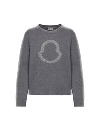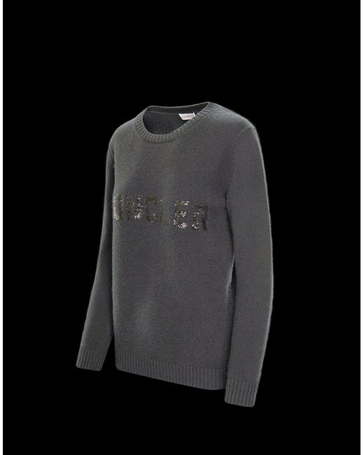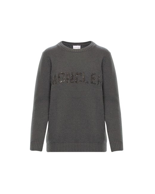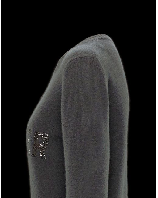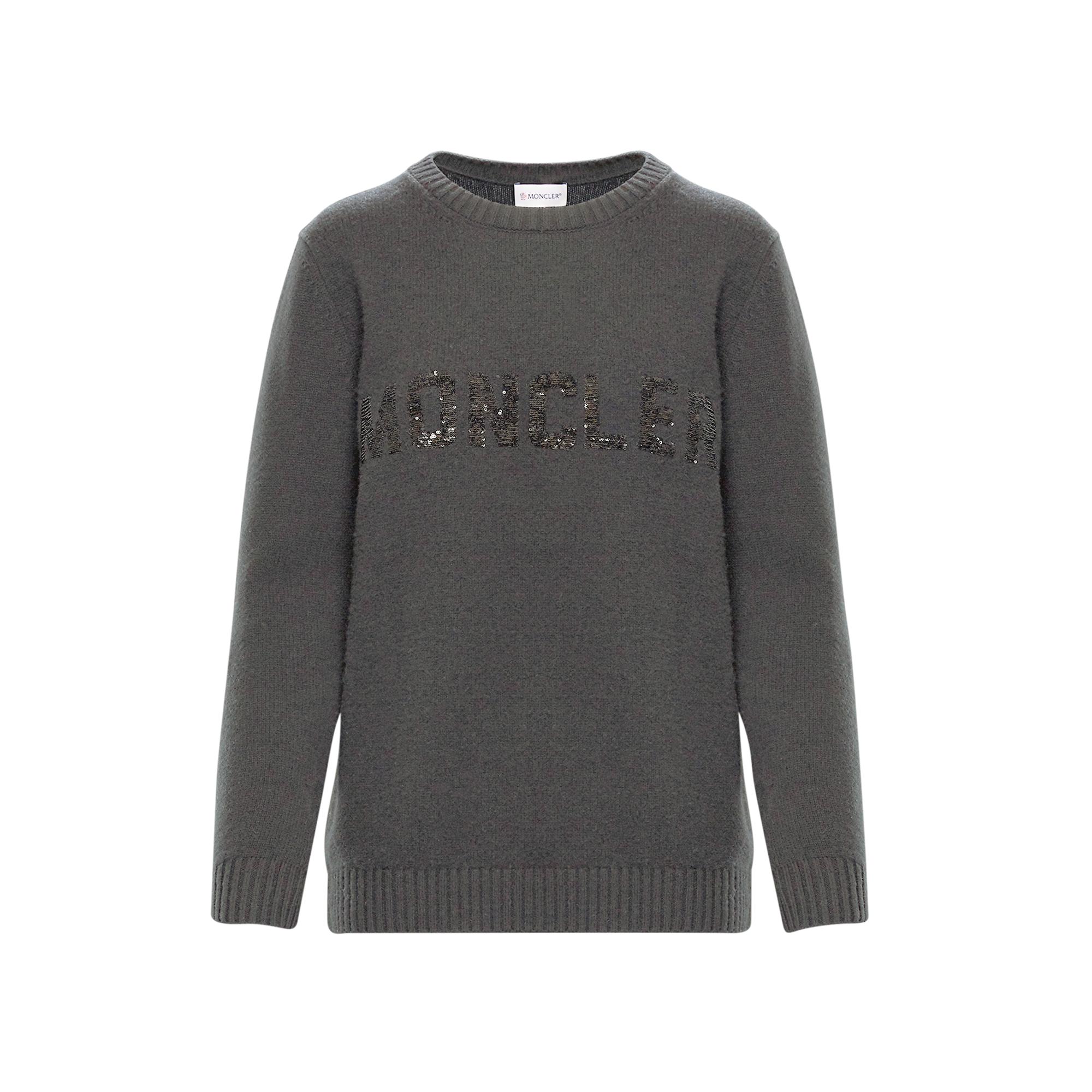 Nuovo look per la scritta Moncler: è rivestita in micro-paillettes la firma del brand apposta sulla versione in misto cachemire del maglione tricot girocollo. Paillettes. Logo. Collo tondo. Maniche lunghe. Maglia leggera. 70% Lana Vergine, 30% Cachemire. Colore: grigio