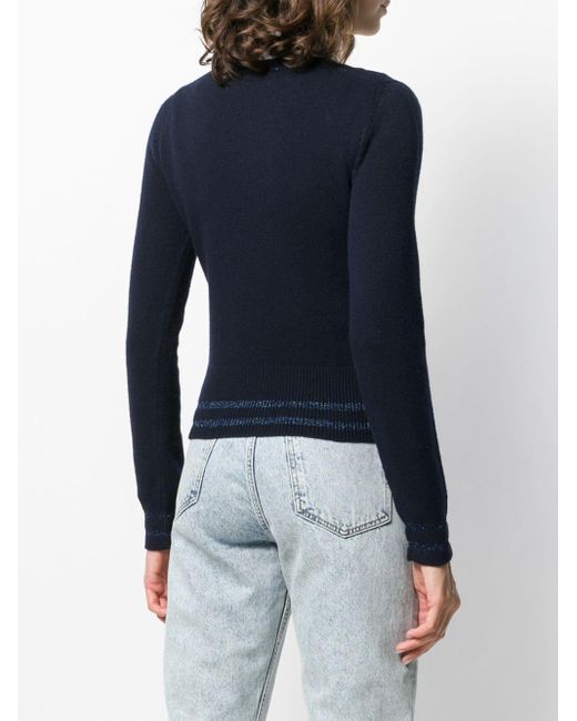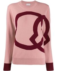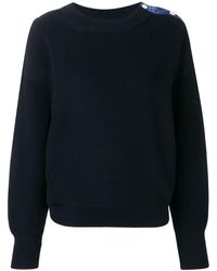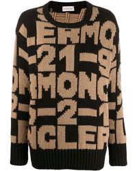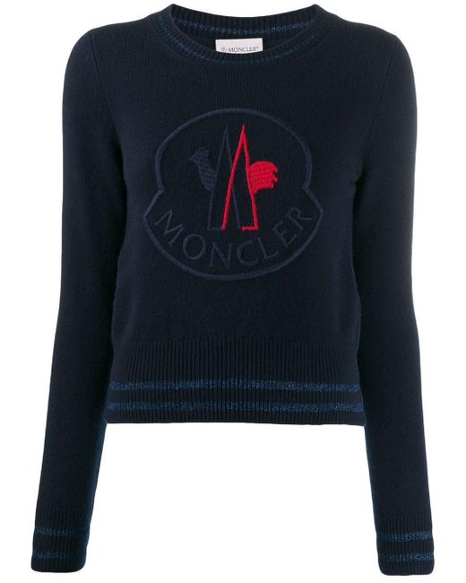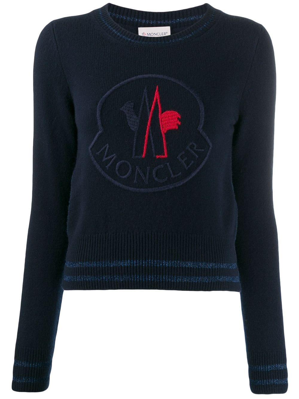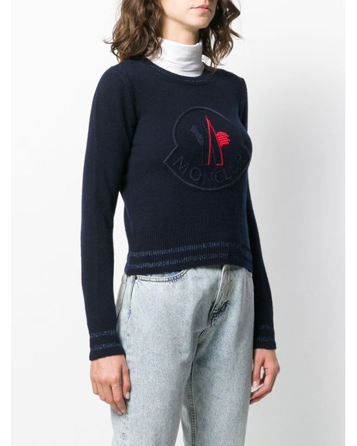 Maglione oversize di Moncler. Modello con girocollo a coste, orlo e polsini a coste e logo ricamato sul davanti. Colore: blu
