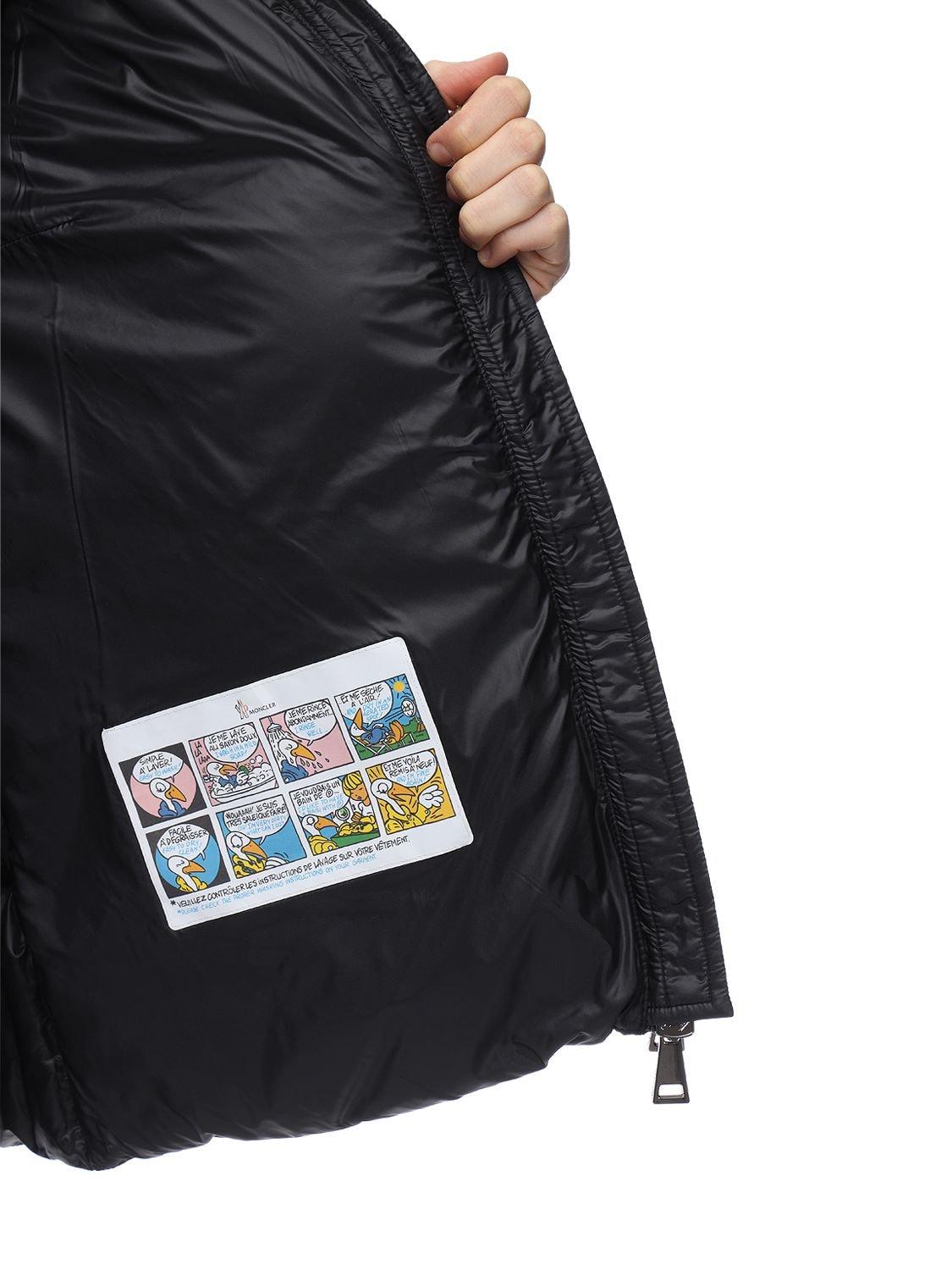 Cappuccio non rimovibile. Chiusura frontale con zip a due vie. Polsini elasticizzati. Patch logo sulla manica. Due tasche laterali con zip. Fodera in nylon. Imbottitura in piumino. 100%pa.