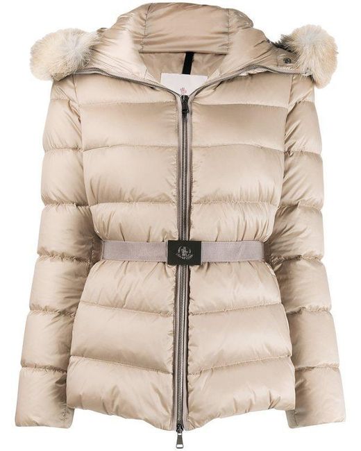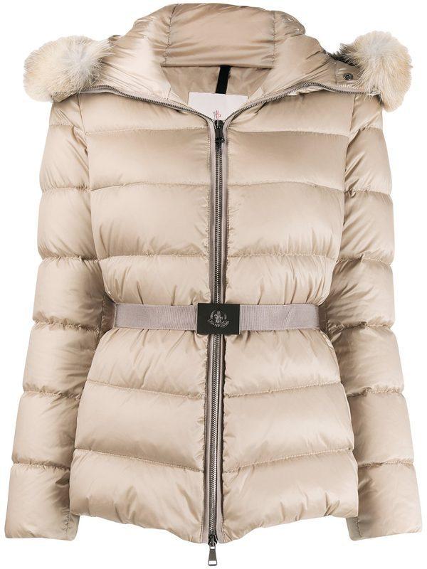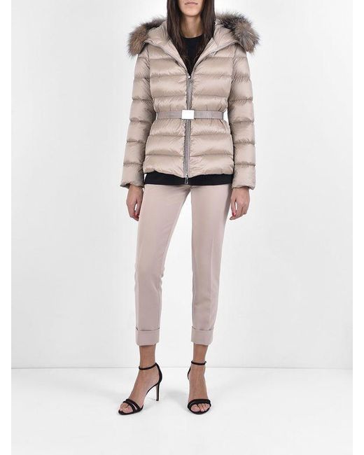 Cappuccio con pelliccia. Chiusura frontale con zip. Interno di piuma d'oca. Cintura sul punto vita. La modella indossa la taglia 1.. 100% Fibra sintetica.