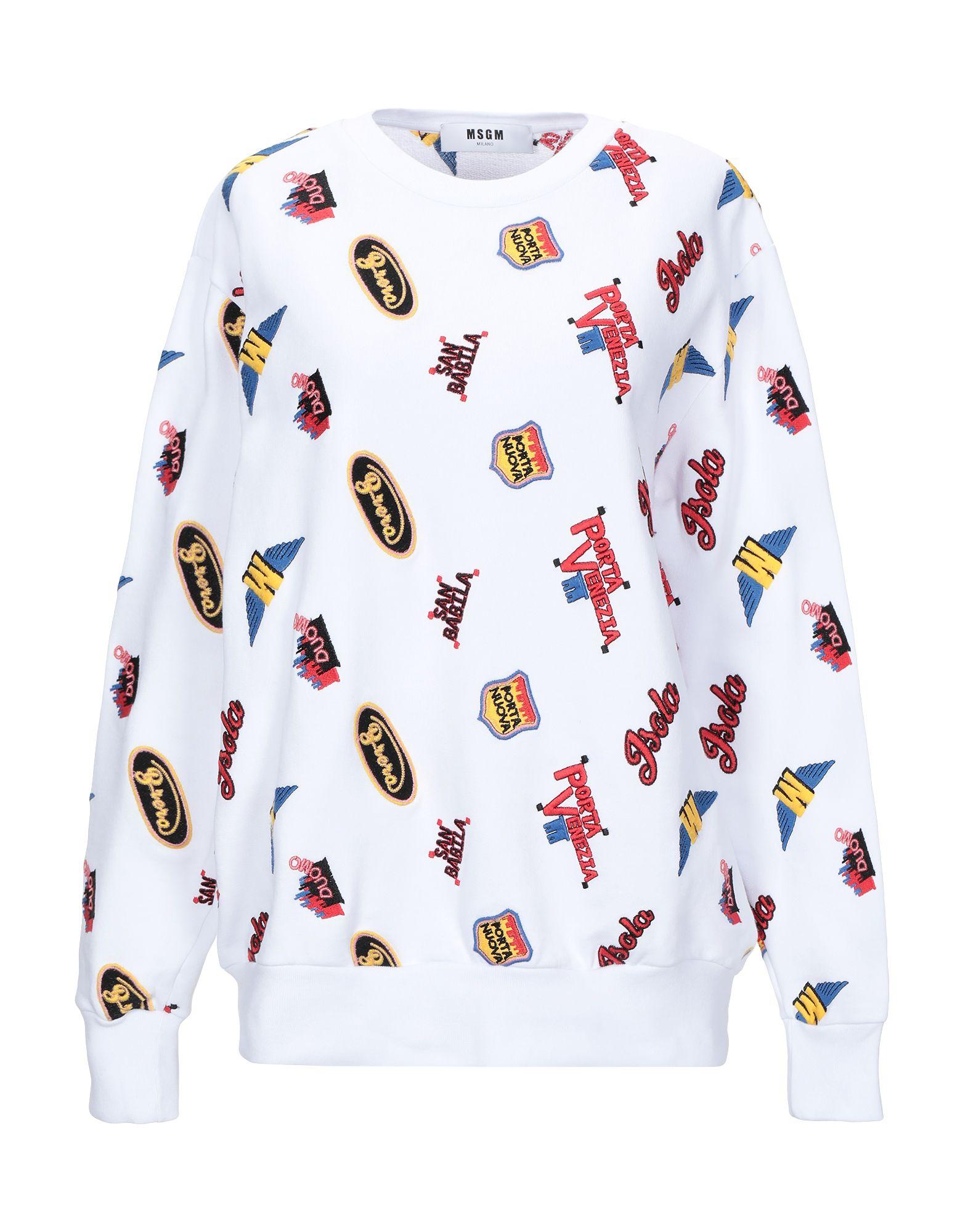 Ricamo, fantasia multicolore, collo tondo, maniche lunghe, senza tasche, interno in felpa estiva. 100% Cotone. Colore: bianco
