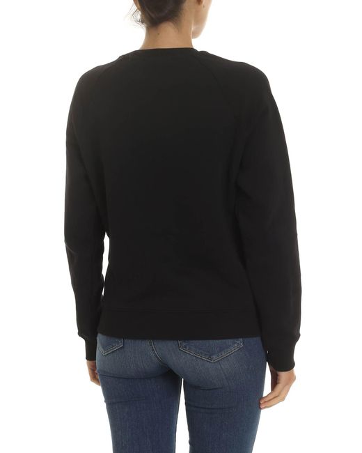 Felpa girocollo in cotone. Colore: nero. Stampa bianca. Interno in pile. Manica raglan. Bordi a costine.