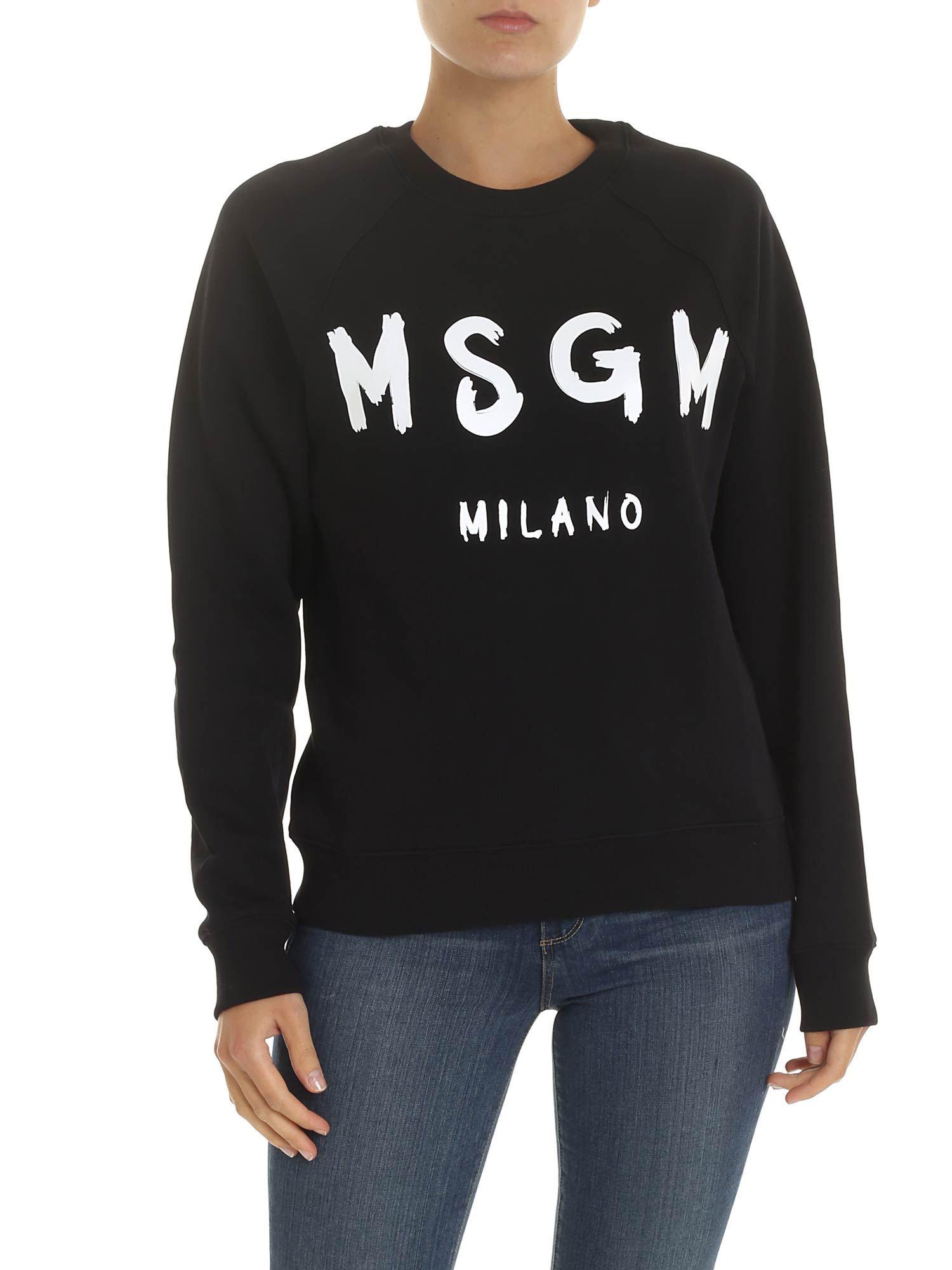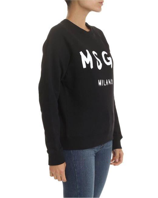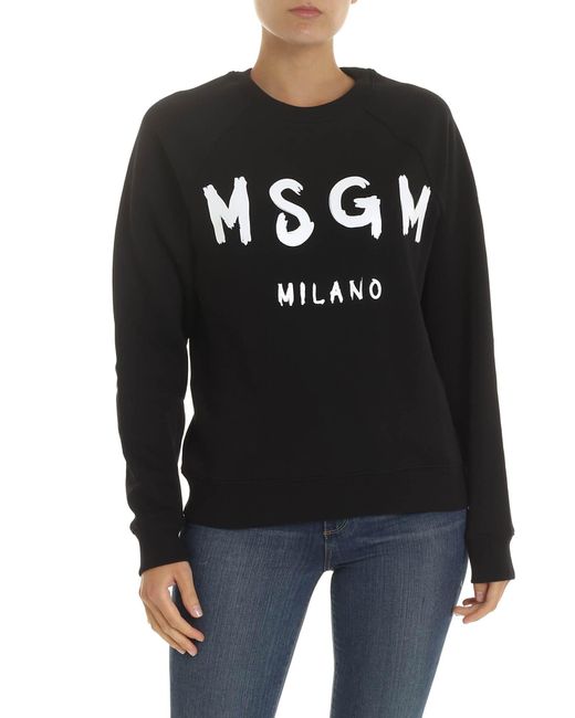Felpa nera stampa logo pennellato da donna di colore nero