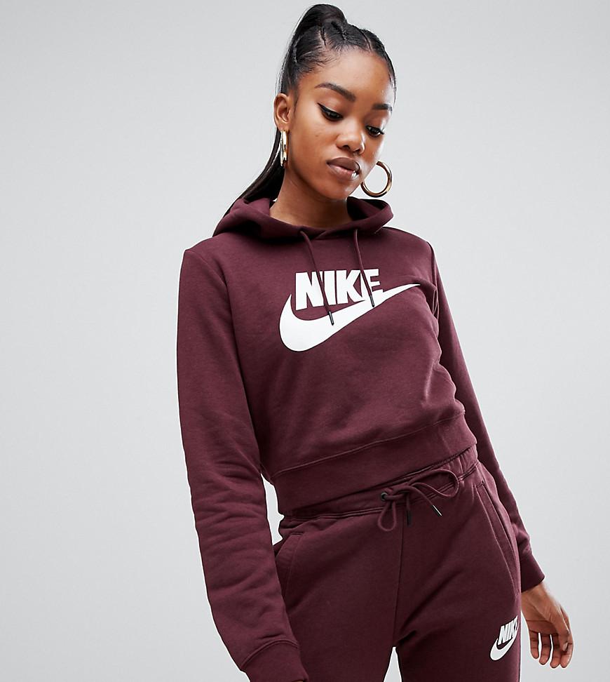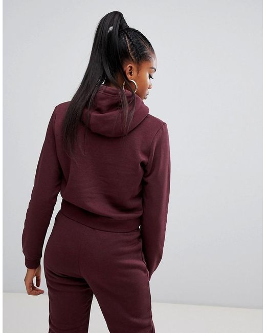Rally - Felpa bordeaux corta con cappuccio e logo da donna di colore rosso
