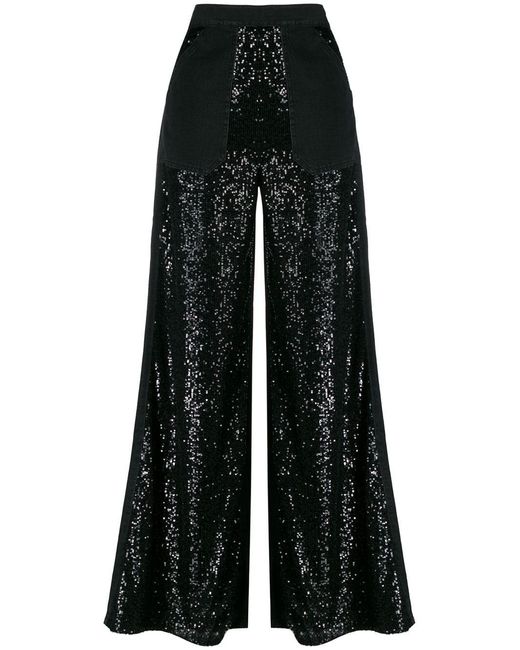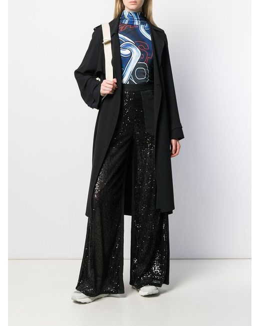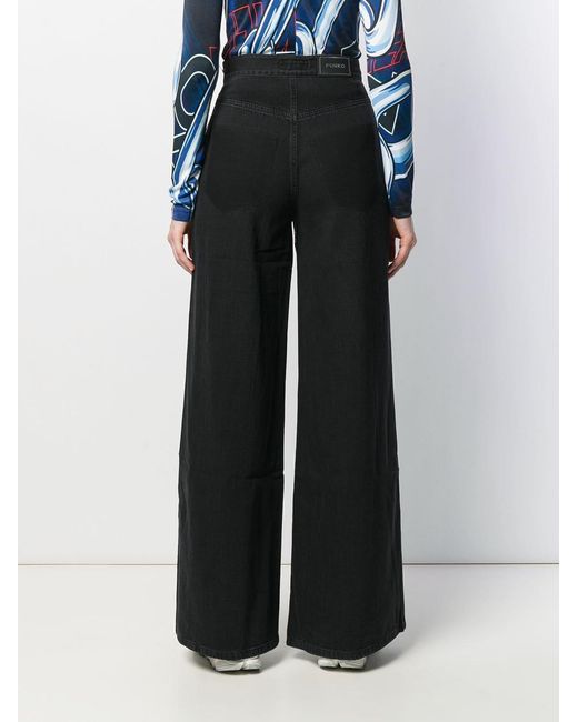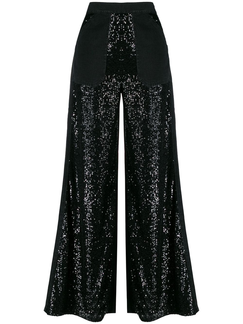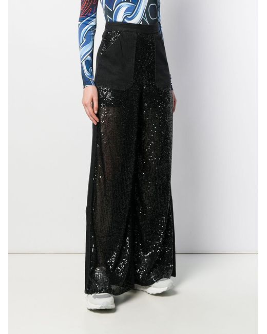 Pantaloni a palazzo Parker Plus di colore nero in cotone di Pinko. Modello con vita alta, chiusura nascosta, tasche frontali, ricami con lustrini e design lungo. Colore: nero