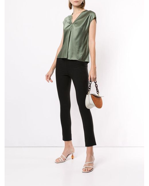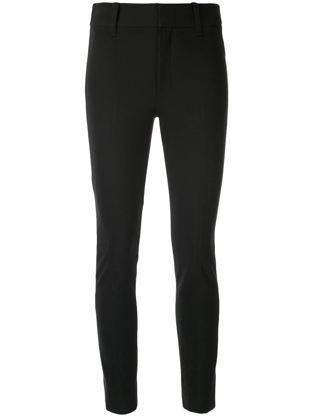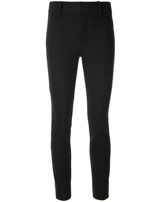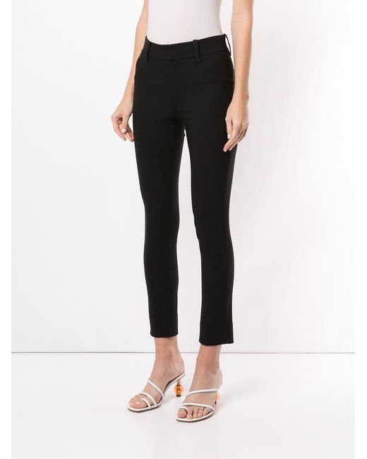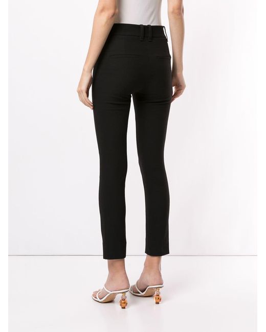 Pantaloni slim di colore nero in misto cotone di Vince. Modello con vita alta, passanti, tasche a filetto sul retro, vestibilità slim e lunghezza crop. Colore: nero