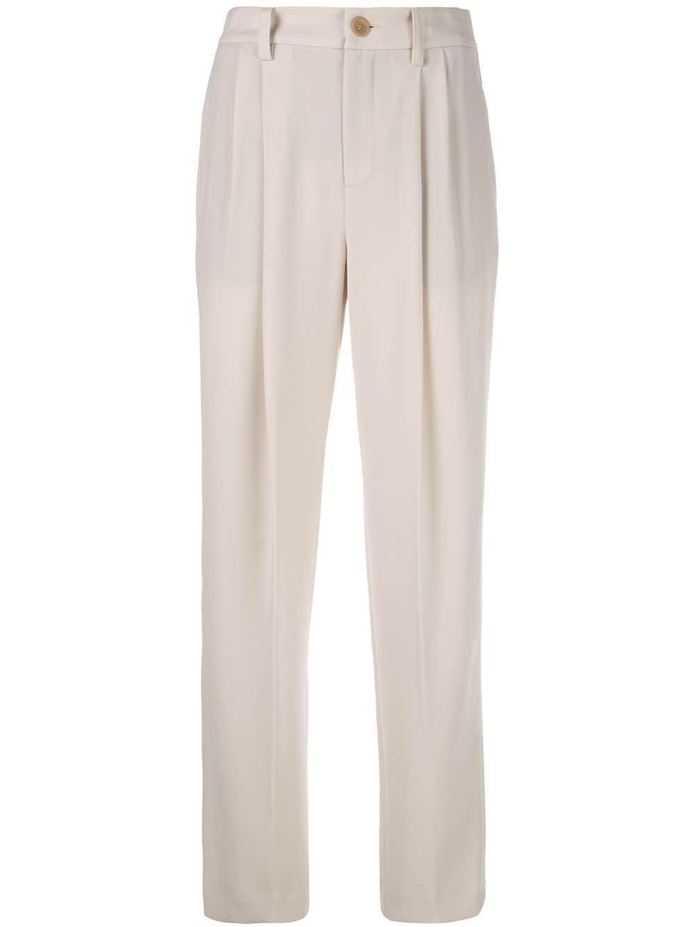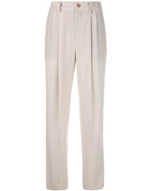 Pantaloni affusolati di Vince. Modello con vita alta, cintura, chiusura a bottone, dettagli plissettati, vestibilità gamba affusolata, tasche laterali a soffietto e tasche a filetto sul retro. Colore: multicolore