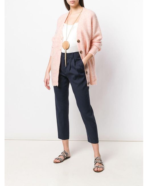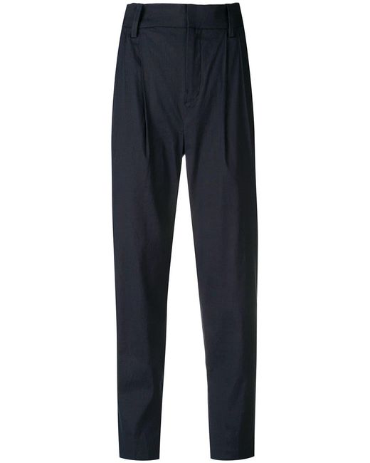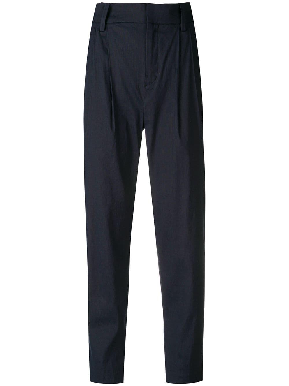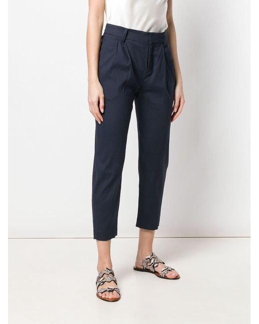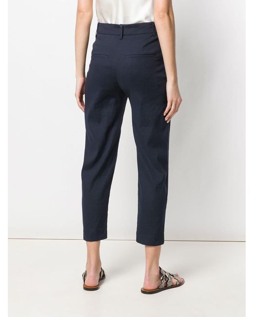 Pantaloni crop in lino di Vince. Modello con vita con passanti, patta con gancio e zip, tasche laterali e tasche posteriori. Vestibilità classica. Veste la taglia indicata. Colore: blu