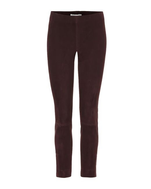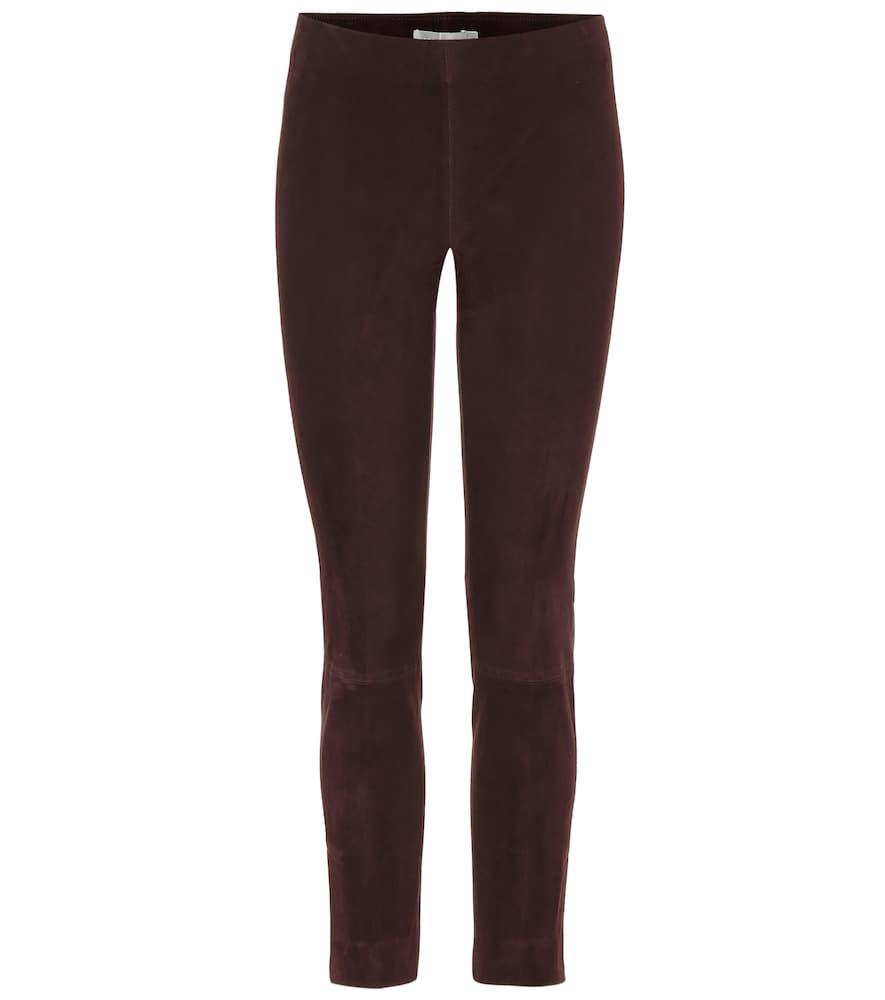 Suede testa di moro e silhouette skinny definiscono la natura sontuosa dei pantaloni firmati Vince: la tinta calda e scura, con una punta di bordeaux all'interno, li renderà protagonisti di look da giorno abbinati a maxi pullover chiari e stivaletti bianchi. Colore: multicolore