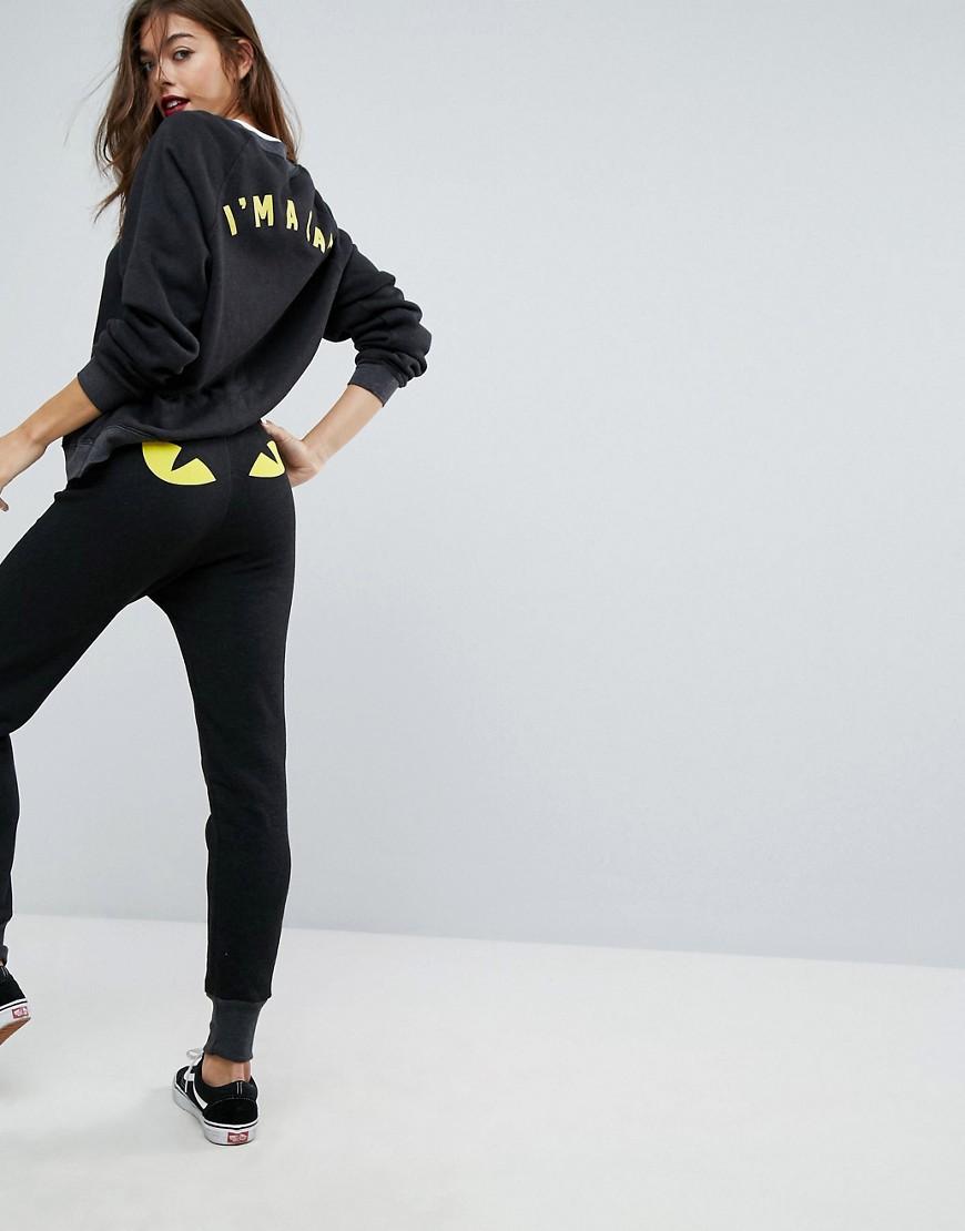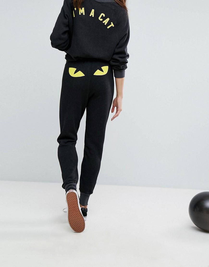 Vai su ASOSPantaloni della tuta di Wildfox, Fascia in vita elasticizzata, Occhi di gatto stampati sul retro, Fondo elasticizzato, Vestibilit comoda. Il brand di moda Wildfox, con sede a Los Angeles, propone T-shirt vintage e spezzati in jersey di alta qualit disegnati da Emily Faulstich e Kimberley Gordon, amiche fin dai tempi dell'infanzia. Stampe e slogan anticonformisti, tagli originali e design drappeggiati danno vita a pezzi unici da abbinare a una linea di costumi con stampe, borse da spiaggia e splendidi occhiali da sole. Cotone/ jersey/ poliestere/ stampa. Colore: nero