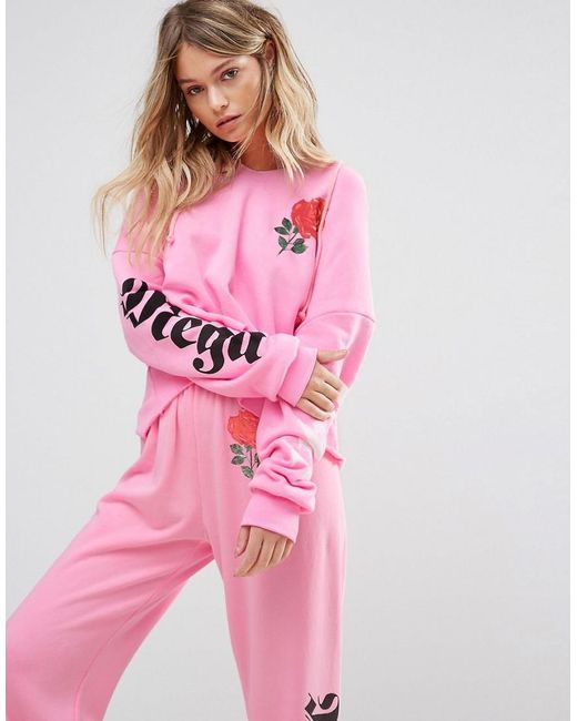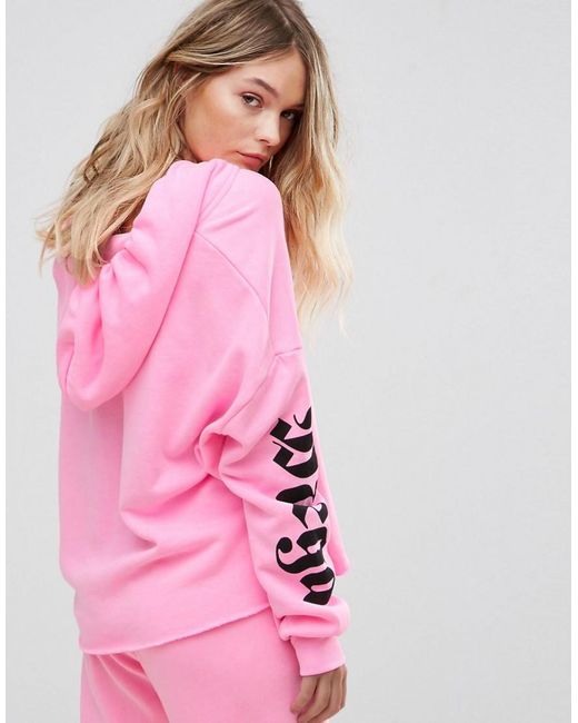 Felpa con cappuccio di Wildfox, In tessuto felpato con interno in pile, Cappuccio con coulisse, Stampa sul torace e sulle maniche, Bordo a coste, Fondo con bordi grezzi, Modello fluo: per visualizzare al meglio l'effettiva tonalità, fare riferimento alle immagini della sfilata, Vestibilità oversize che scende ampia su tutto il corpo, Lavabile in lavatrice, 70% cotone, 30% poliestere, Il/la modello/a indossa la taglia UK S/EU S/US XS. Il brand di moda Wildfox, con sede a Los Angeles, propone T-shirt vintage e spezzati in jersey di alta qualità disegnati da Emily Faulstich e Kimberley Gordon, amiche fin dai tempi dell'infanzia. Stampe e slogan anticonformisti, tagli originali e design drappeggiati danno vita a pezzi unici da abbinare a una linea di costumi con stampe, borse da spiaggia e splendidi occhiali da sole. Cotone/ jersey/ pile/ poliestere/ stampa/ tessuto felpato. Colore: rosa