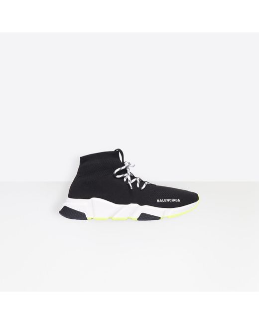 Sneakers Speed di colore nero di Balenciaga. Modello con punta tonda, chiusura con lacci e suola in gomma bianca.