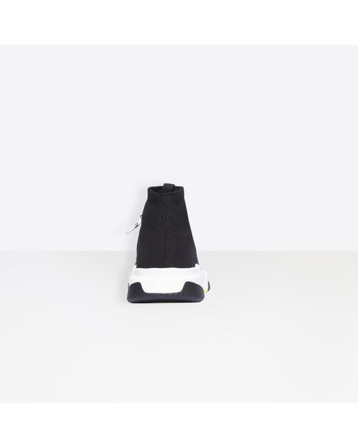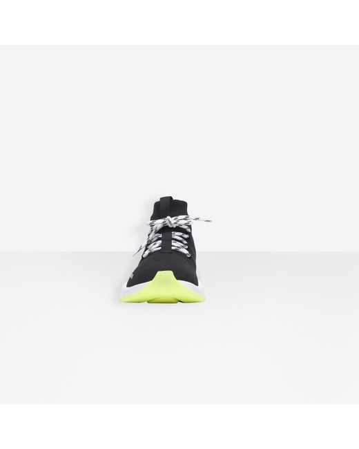Speed con lacci in maglia nera, logo Balenciaga bianco e suola tricolore. Iconiche sneaker atletiche Balenciaga Lacci decorativi. Suola modellata ultra flessibile. Suola con tecnologia "no memory". Curvatura ergonomica 10 mm. Super leggere: 240 g - sensazione come a piedi nudi. Logo bianco stampato sul lato esterno. Logo goffrato sul retro della suola. Fabbricate in italia. Pulire con un panno morbido. 80% poliammide, 20% elastan. Colore: nero