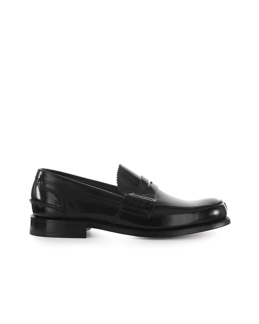 Mocassino college Tunbridge di Church's in pelle di vitello nera sfoderata. La costruzione con metodo Goodyear una cucitura artigianale che unisce tomaia suola e guardolo garantisce durata e comfort senza pari oltre alla possibilità di ricondizionamento. Ogni calzatura riporta all'interno della tomaia il numero seriale e il nome della scarpa scritti a mano in una speciale calligrafia che rende ogni esemplare unico. Suola in cuoio altezza tacco 2 cm. Colore: nero