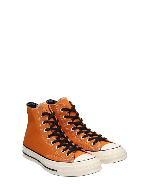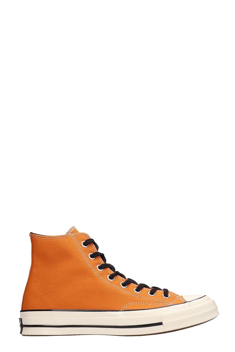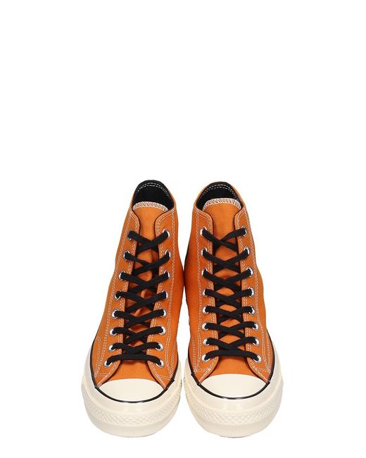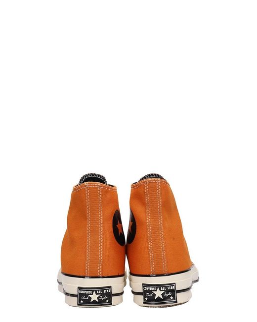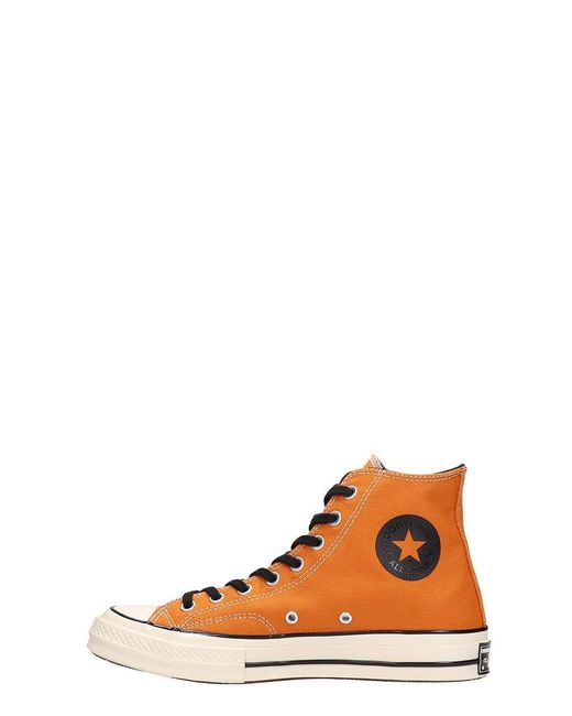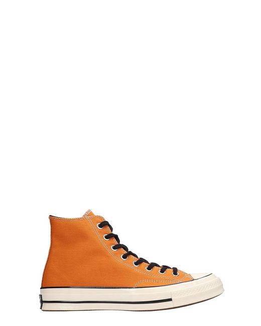 Sneakers Chuck 70 Hi in canvas arancio, lacci, logo laterale iconico, cucitura sul fianco, dettagli archivistici come suola in gomma alta. Colore: arancione