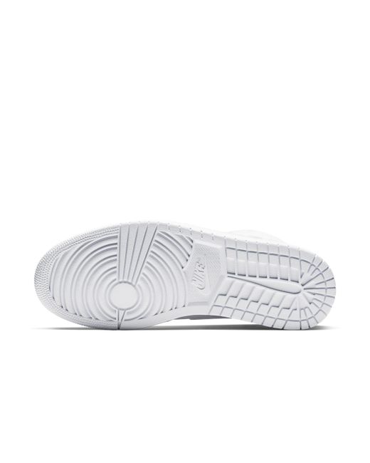 La scarpa Air Jordan 1 Mid, ispirata alla prima AJ1, nasce per far vedere agli appassionati della prima ora quanta strada ha fatto il marchio Jordan dal debutto nel 1985. Colore: bianco