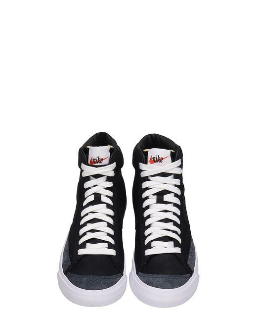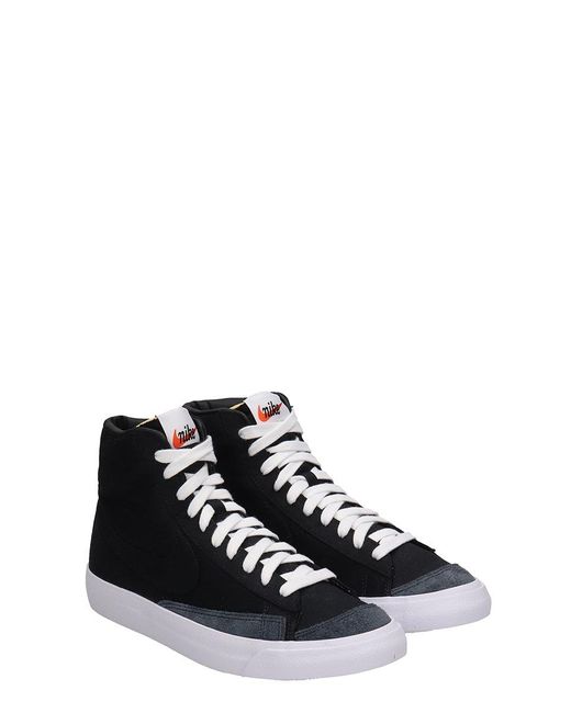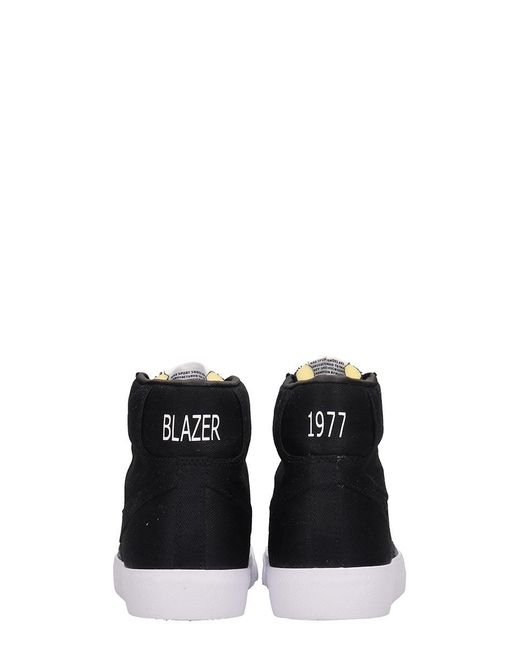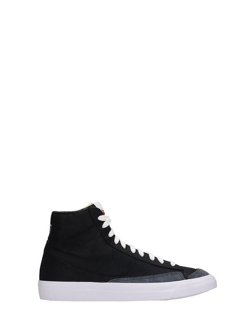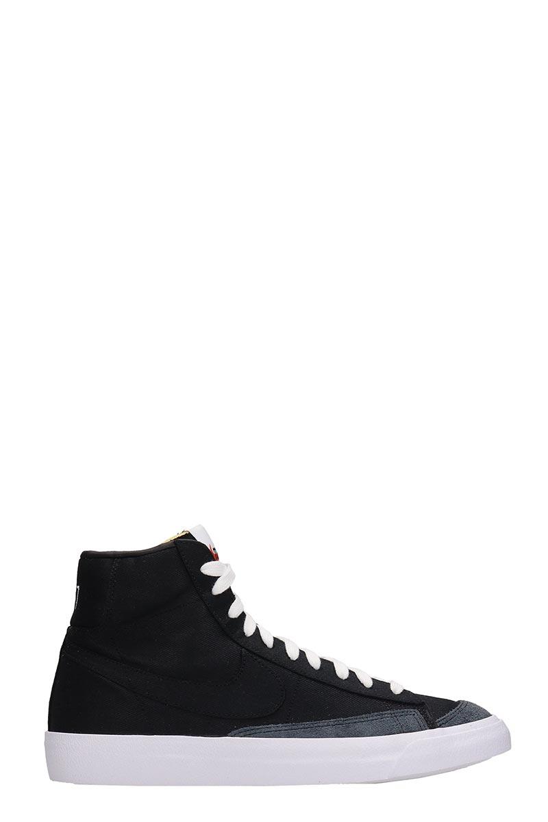Sneakers Blazer Mid 77 in tela nere, lacci, logo iconico del brand sulla linguetta, dettagli in camoscio, suole in gomma. Colore: nero