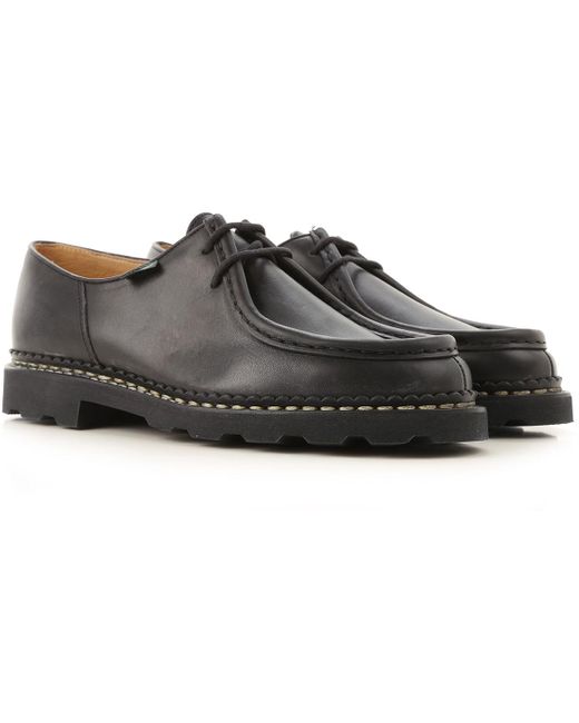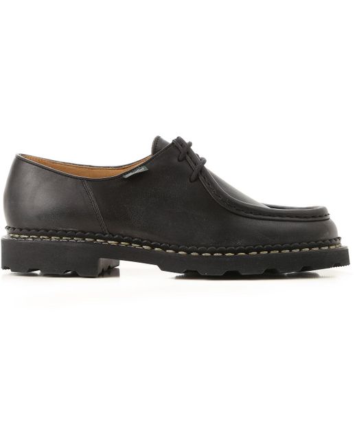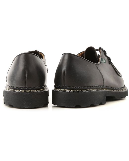 Nero. Autunno - Inverno 2019/20.Made in Italy. Punta Rotonda. Dettagli cuciti. Logo Laterale. Suola di Gomma. Pelle. Scarpe Uomo: Paraboot Scarpe Stringate Uomo. Allacciate. Colore: nero
