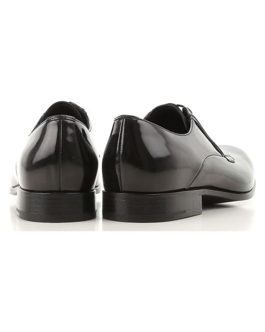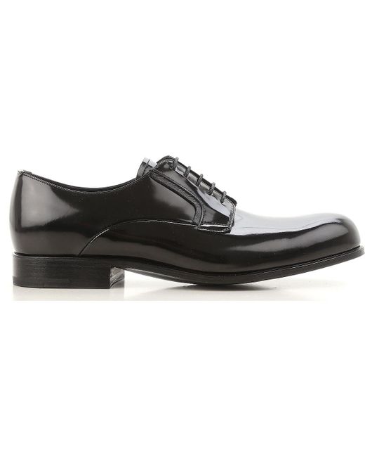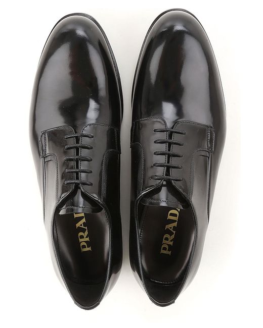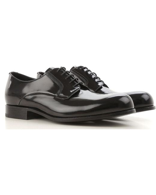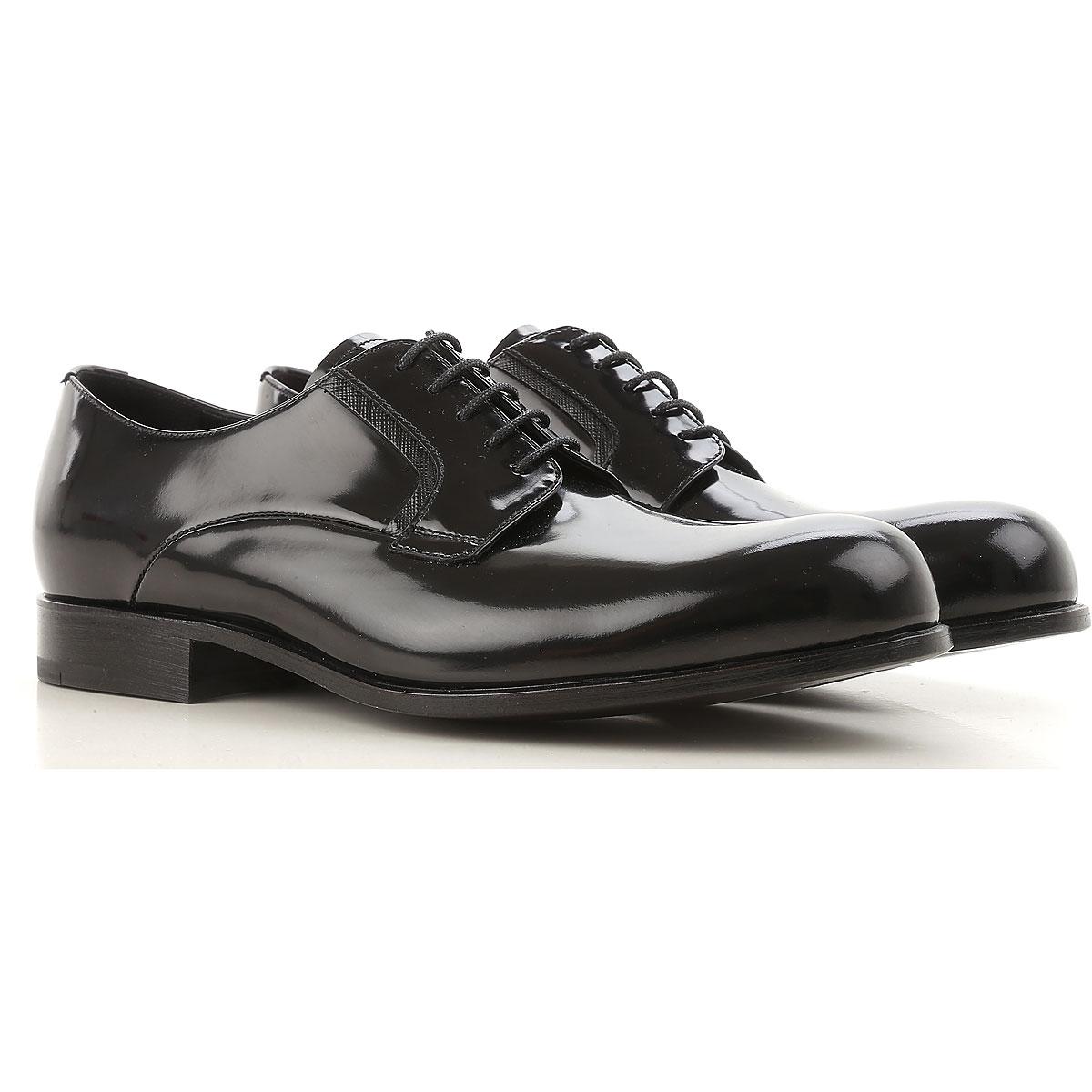 Glossy Black. In Outlet. Made in Italy. Punta Rotonda. Allacciata. Suola interna con prada logo. Suola di pelle con logo marchiato. Include la fodera. Pelle Di Vitelllo. Scarpe Uomo: Prada Scarpe Stringate Uomo. Allacciate. Colore: nero