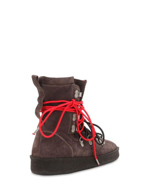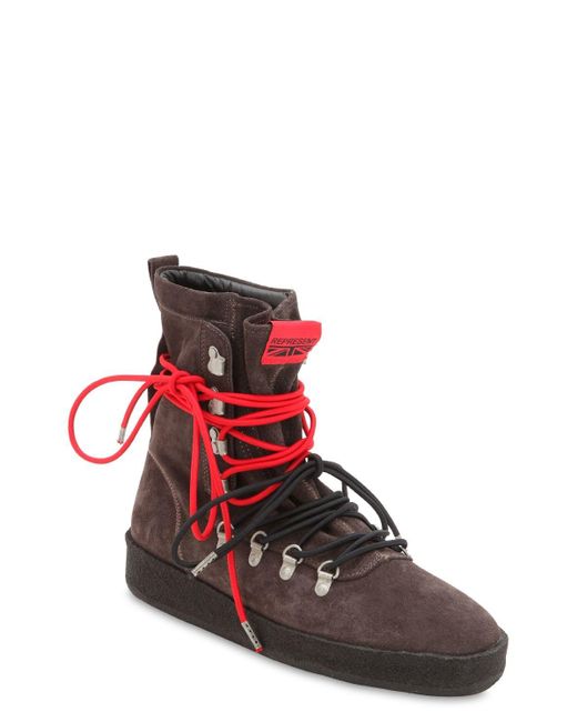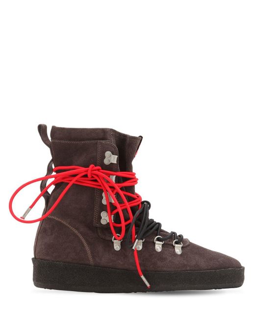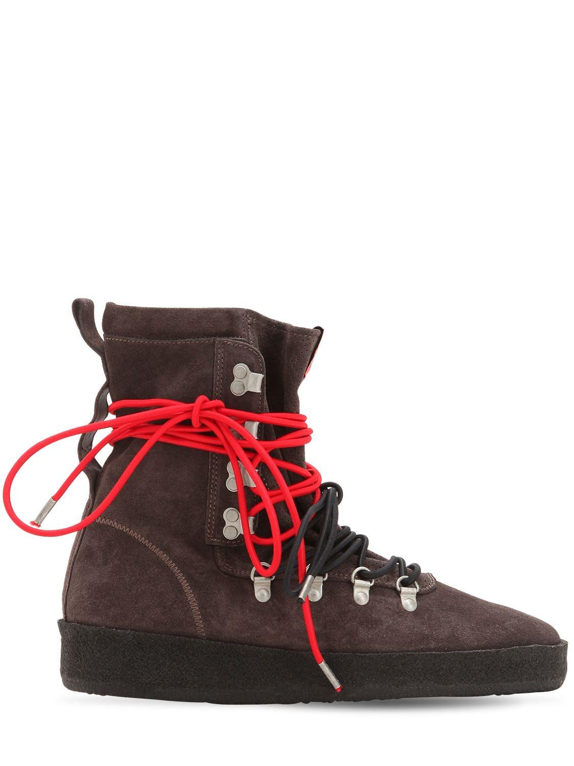 Tomaia in camoscio. Anelli a d in metallo. Ganci per lacci. Tirante sul retro. Lacci a contrasto. Interno in pelle. Suola in gomma. 100%calf. Colore: grigio