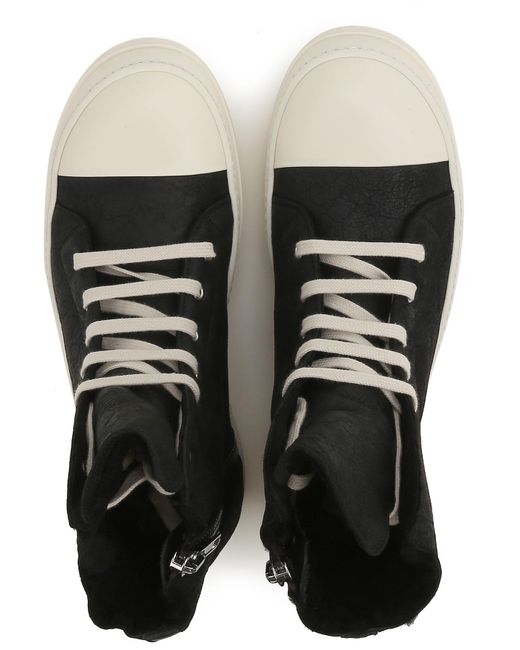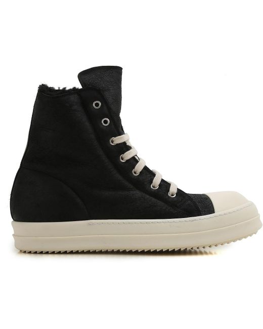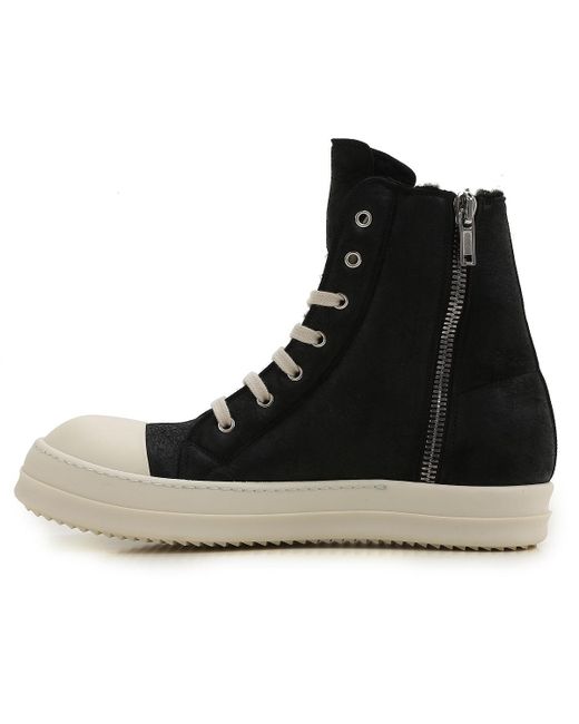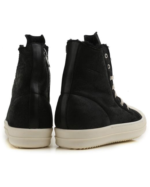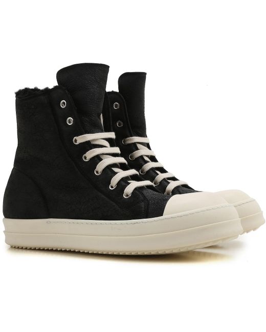 Nero. In Outlet. Made in Italy. Scarpa alta. Punta Rotonda. Punta di gomma. Allacciata. Include la fodera. Pelle. Scarpe Uomo: Rick Owens Sneaker Uomo. Sneakers. Altri Colori: Milk. Colore: nero