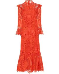 Lace Halterneck Midi Vestito - Rosso