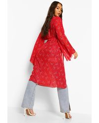Maxiabito longuette a kimono in chiffon con maniche ampie - Arancione